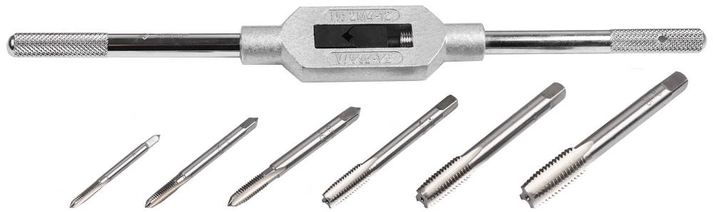 Метчикодержатель оснащен регулируемым винтовым механизмом для надежной фиксации метчиков