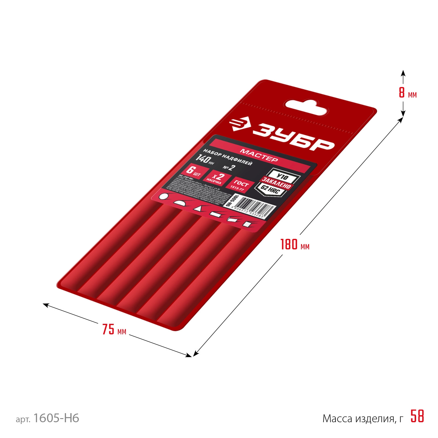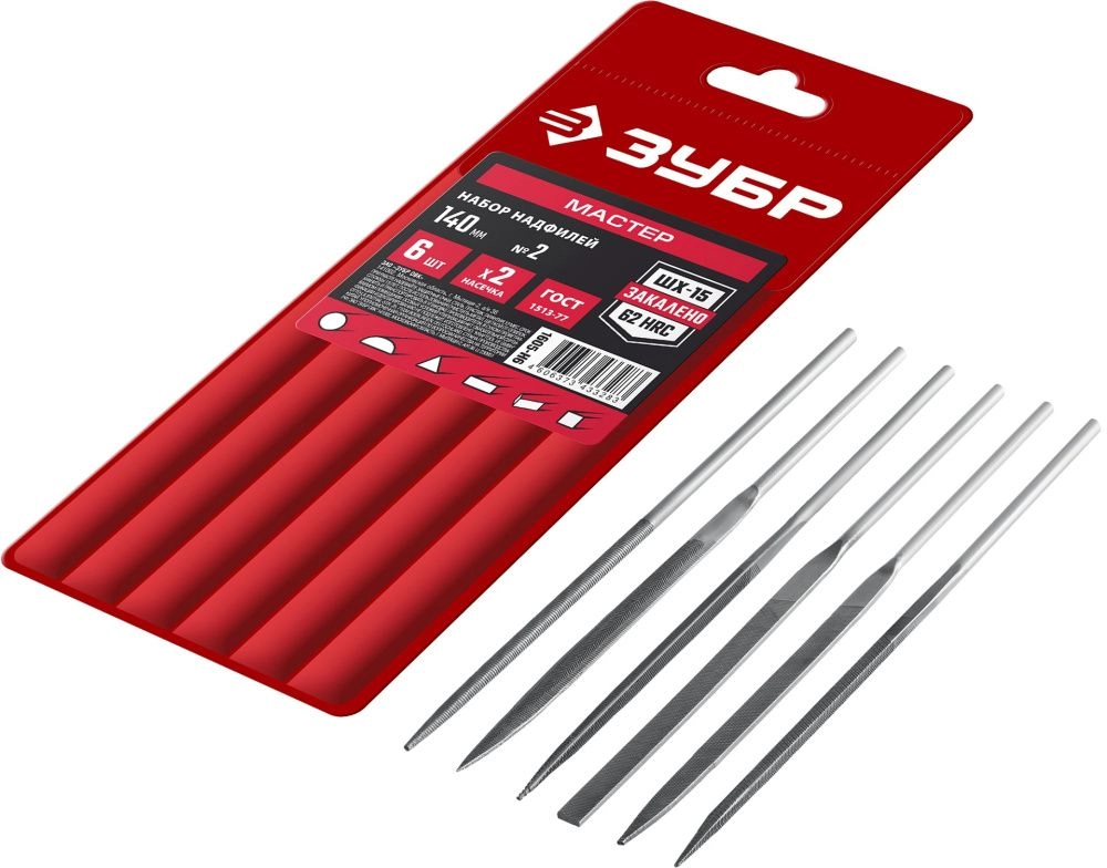 ПроизводителиНабор надфилей 140мм, насечка №2, 6пр., чехол (1605-H6) ЗУБР