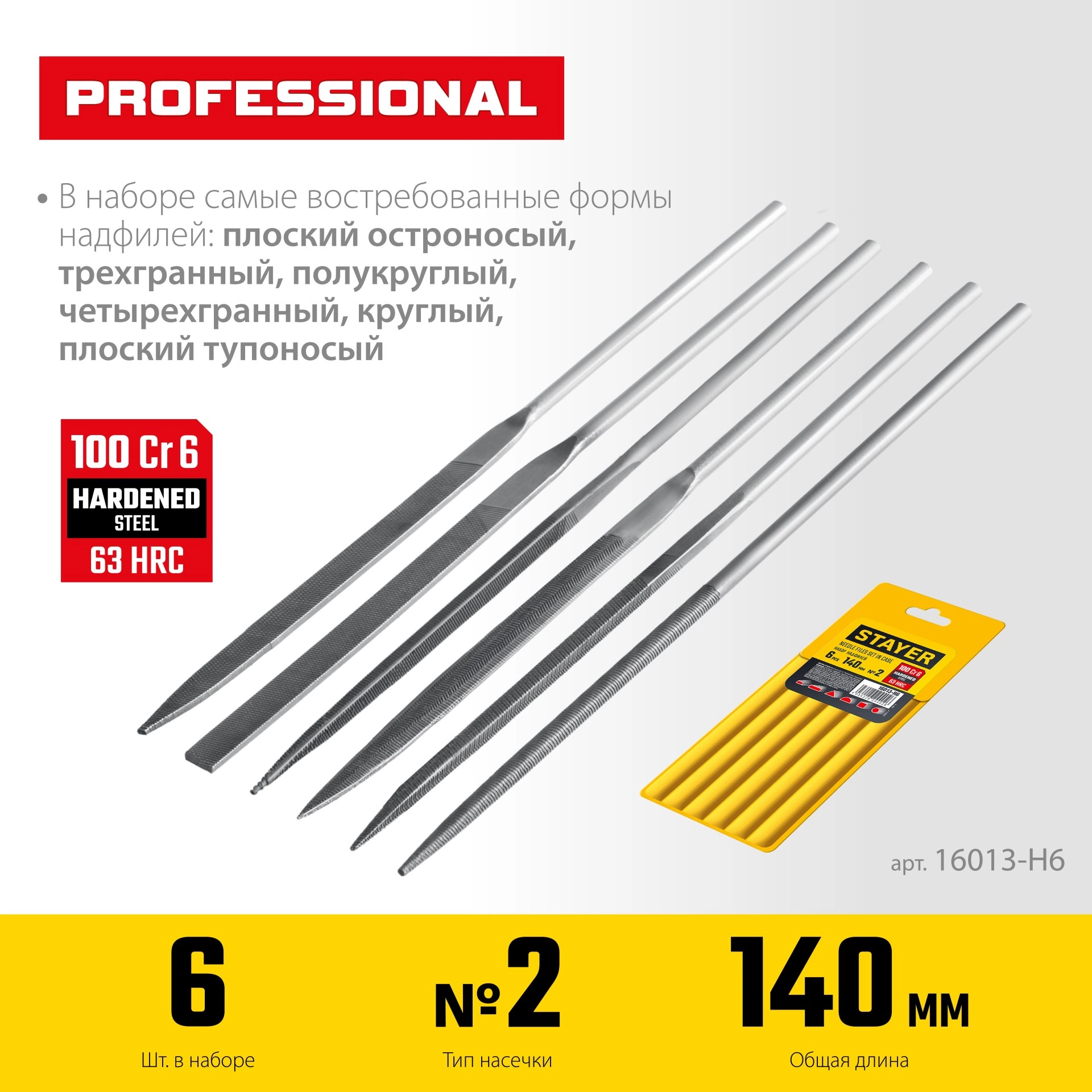 ПроизводителиНабор надфилей 140мм, насечка №2, 6пр., в чехле (16013-H6) STAYER
