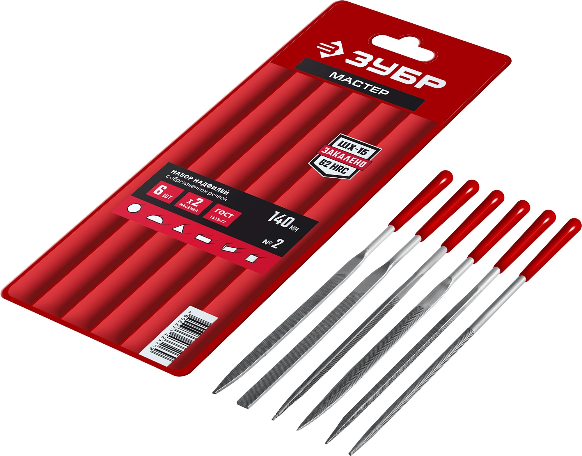 ПроизводителиНабор надфилей 140мм, насечка №2, пласт. ручки, 6пр., чехол (16014-H6) ЗУБР