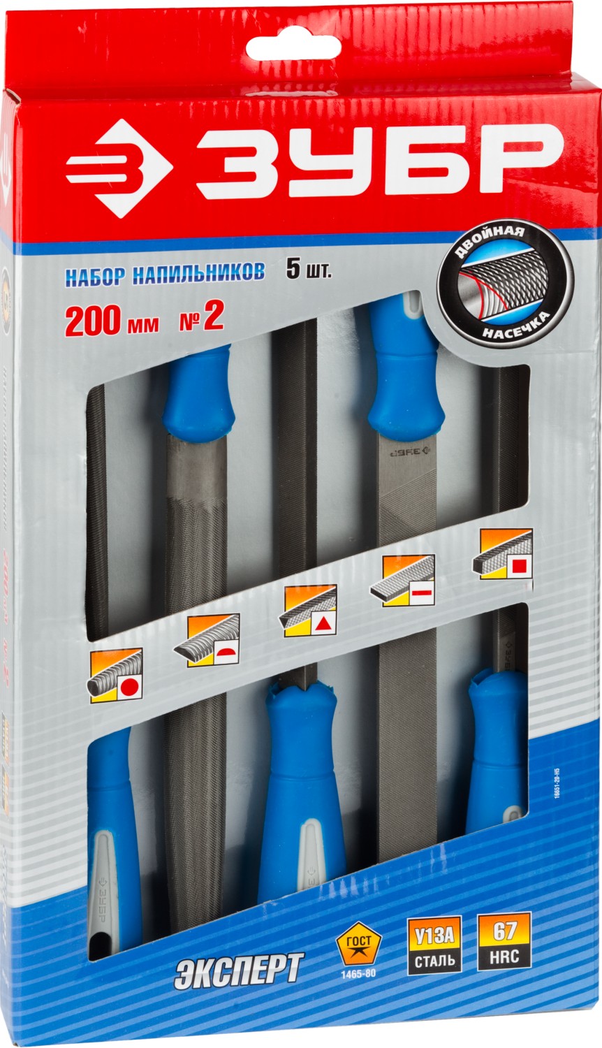 ПроизводителиНабор напильников №2, 200мм, 5пр. (плоск., трехгр., кругл., полукругл., квадр.) (16651-20-H5) ЗУБР