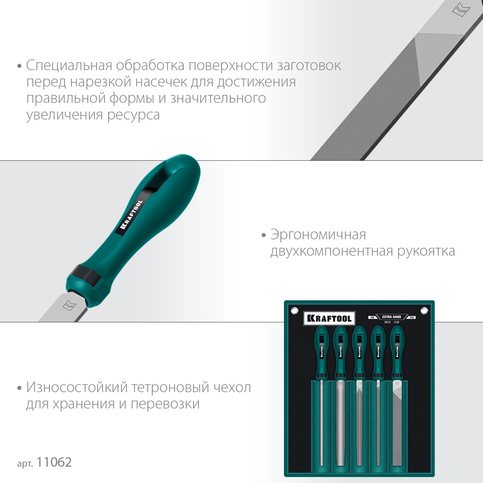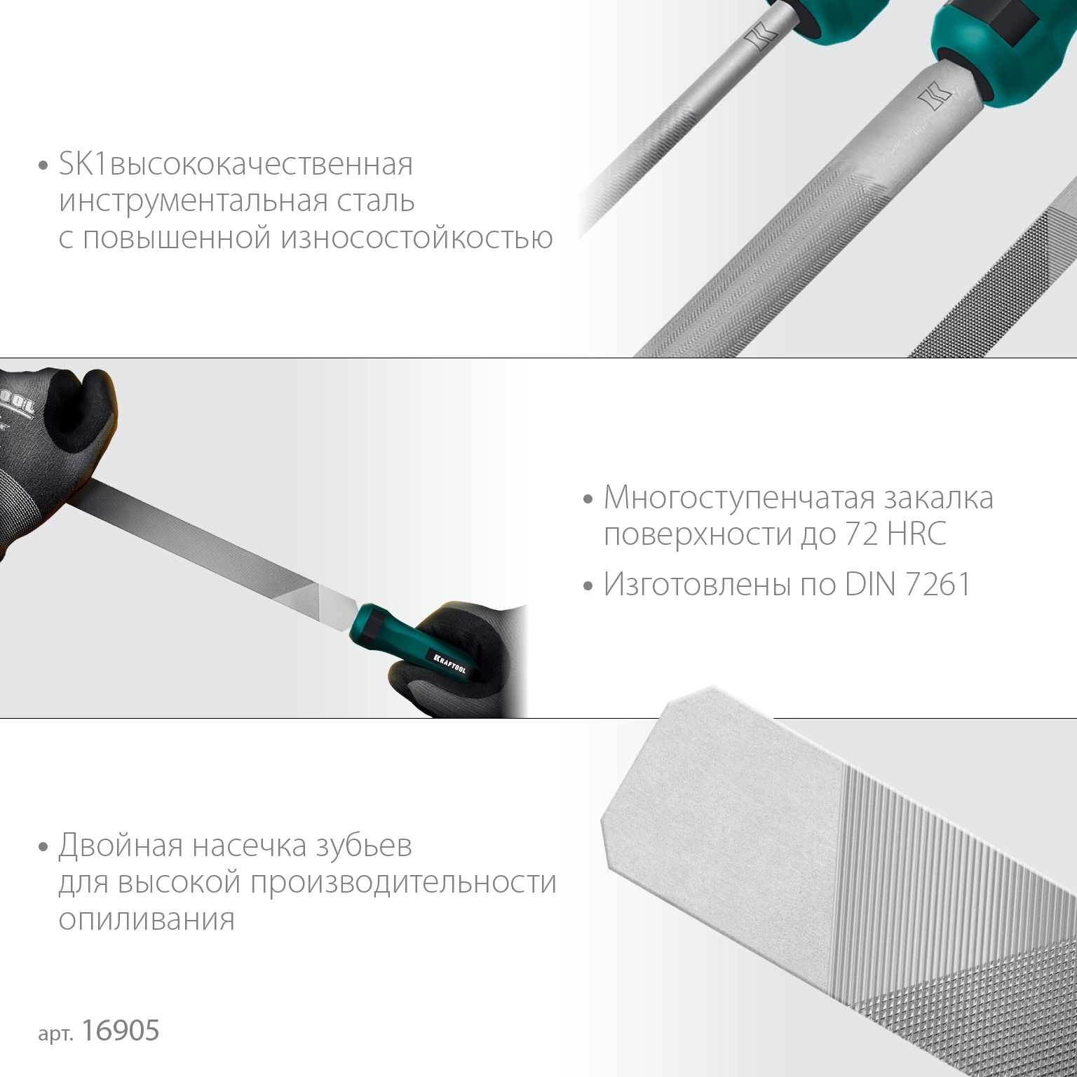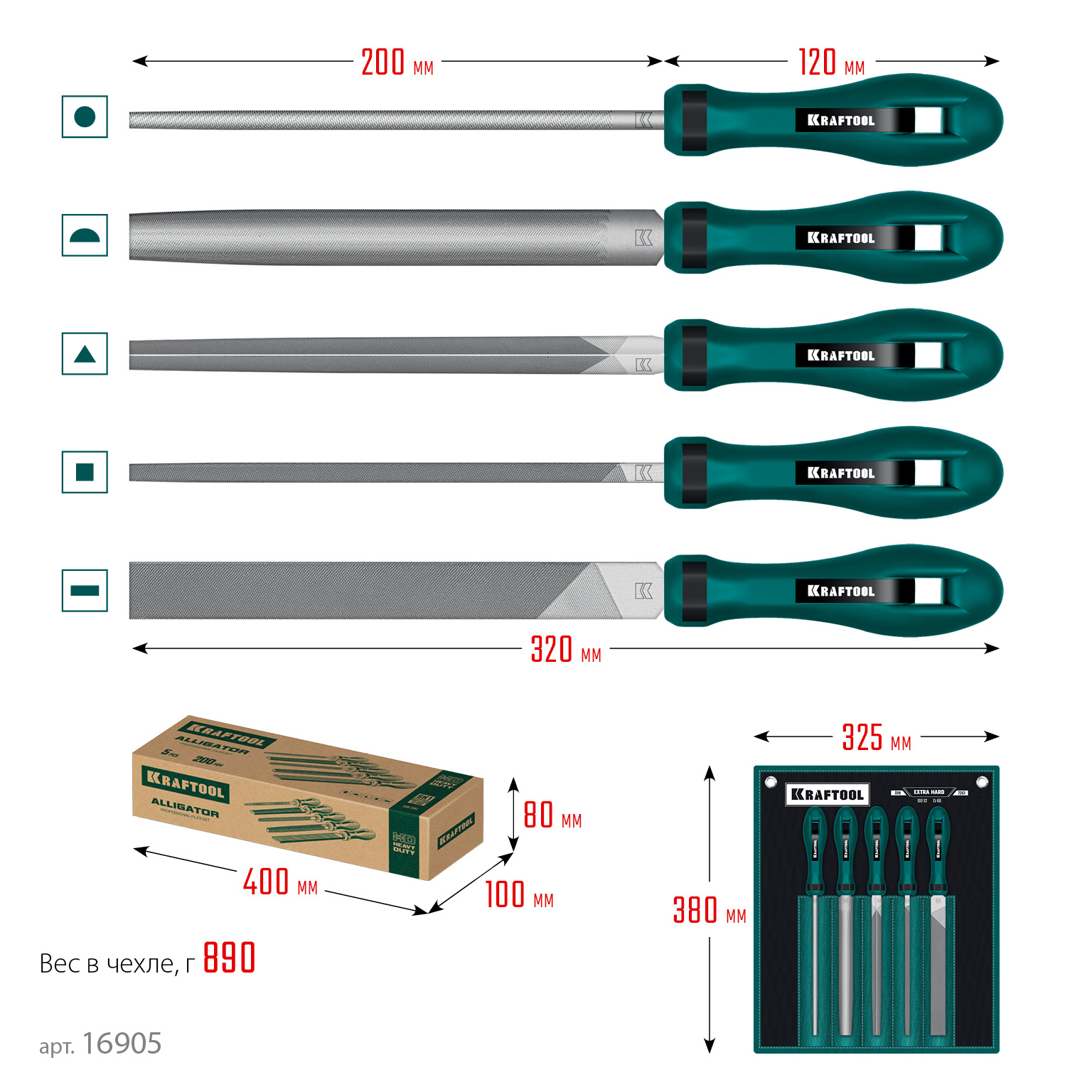 Набор напильников с двухкомпонентной рукояткой KRAFTOOL 16905, предназначен для обработки поверхностей различной формы, острых кромок и выступов. Напильники KRAFTOOL серии «ALLIGATOR» изготовлены из высококачественного материала и подвергнуты многоступенчатой закалке для длительного срока службы. Обеспечивает высокую скорость и качество выполнения работ. Эргономичная двухкомпонентная рукоятка обеспечивает надежный захват и комфортную работу.