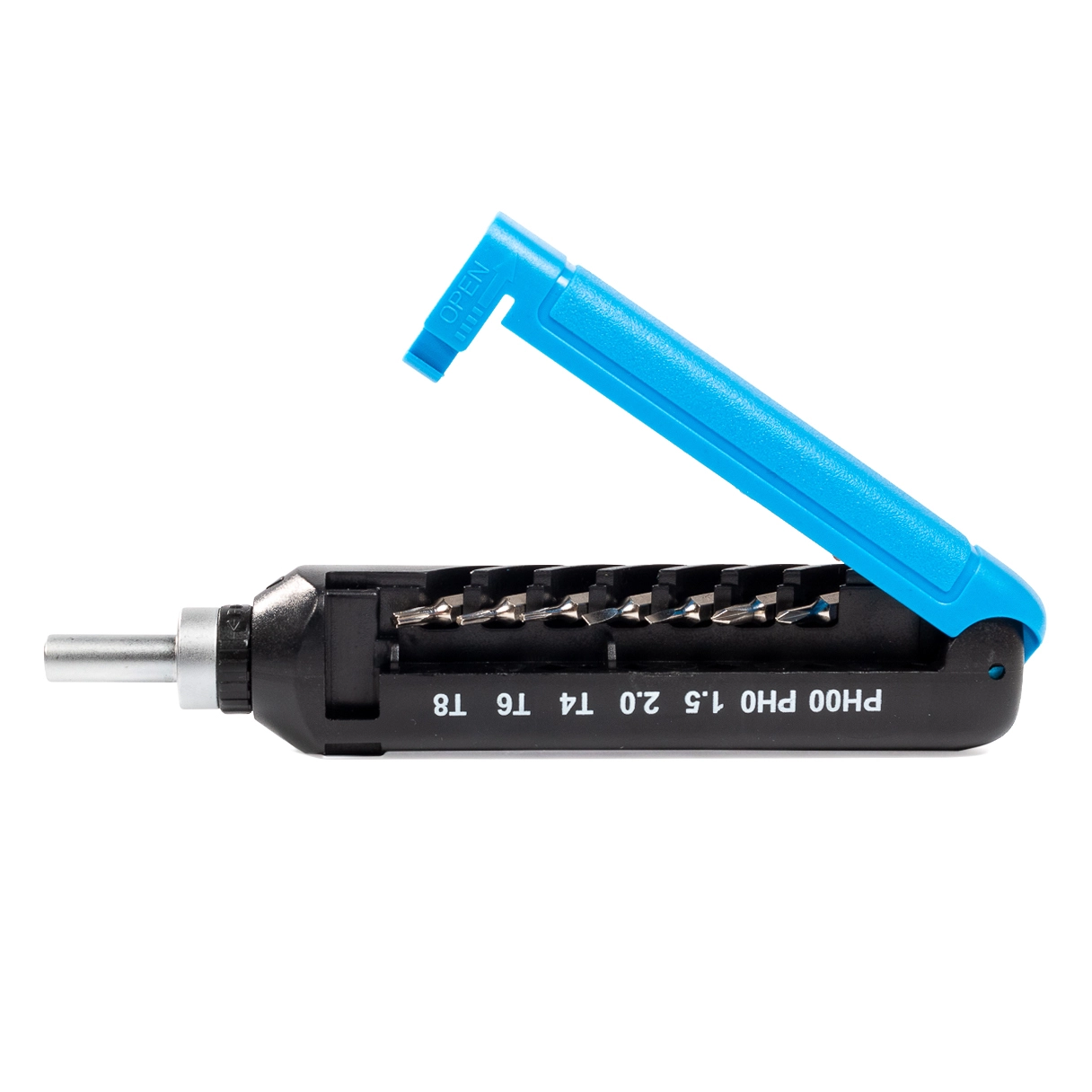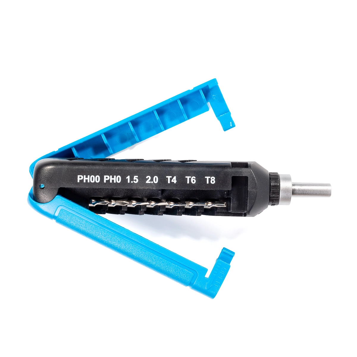 Состав набора: биты шлиц: 1.5, 2.0 мм биты PH: PH00, PH0 биты TORX: T4, T6, T8 биты квадратные: 2.5, 3.0, 3.5, 4.0, 4.5 мм реверсивная отвертка-рукоятка