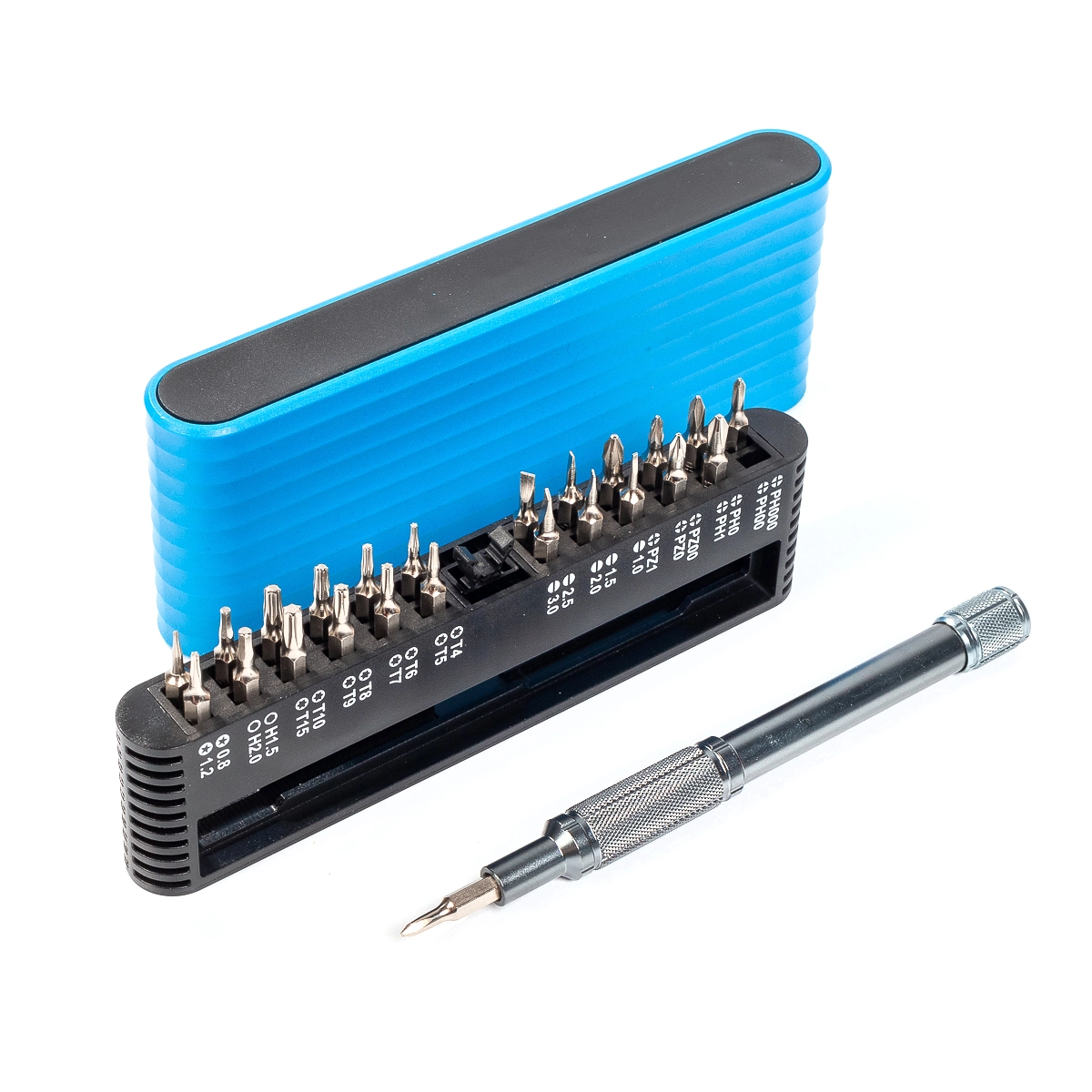 Состав набора: биты шлиц: 1.0, 1.5, 2.0, 2.5, 3.0 мм биты PH: PH000, PH00, PH0, PH1 биты PZ: PZ00, PZ0, PZ1 биты TORX: T4, T5, T6, T7, T8, T9, T10, T15 биты шестигранные: H1.5, H2.0 биты «звездочка»: P2, P5 отвертка пластиковый пенал