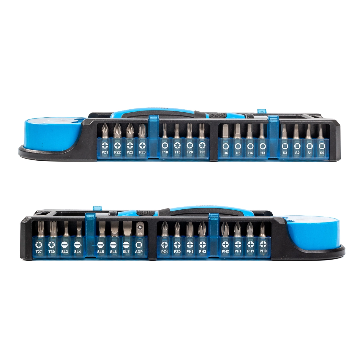 Состав набора: биты шлиц: 3.0, 4.0, 5.0, 6.0, 7.0 мм биты PH: PH0, PH1, PH1, PH2, PH2, PH3 биты PZ: PZ0, PZ1, PZ1, PZ2, PZ2, PZ3 биты TORX: T10, T15, T20, T25, T27, T30 биты шестигранные: H3, H4, H5, H6 биты квадратные: S0, S1, S2, S3 адаптер для установки бит головки шестигранные 1/4”: 5, 6, 7, 8, 9, 10 мм реверсивная отвертка пластиковый пенал