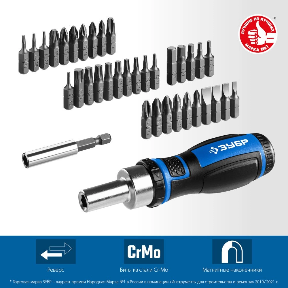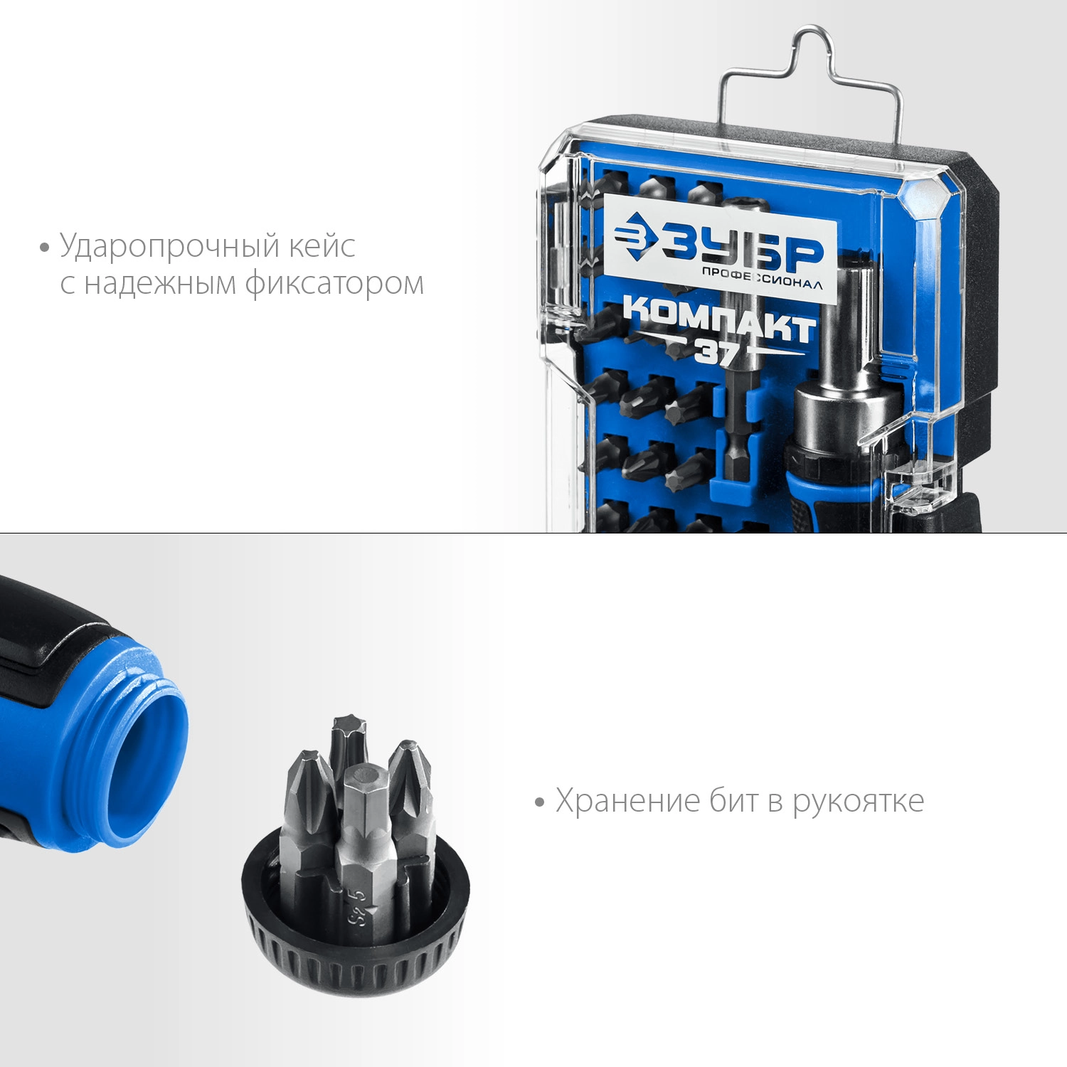 ПроизводителиОтвертка реверсивная с насадками, 37пр. "Компакт-37" (25164-H37_z01) ЗУБР