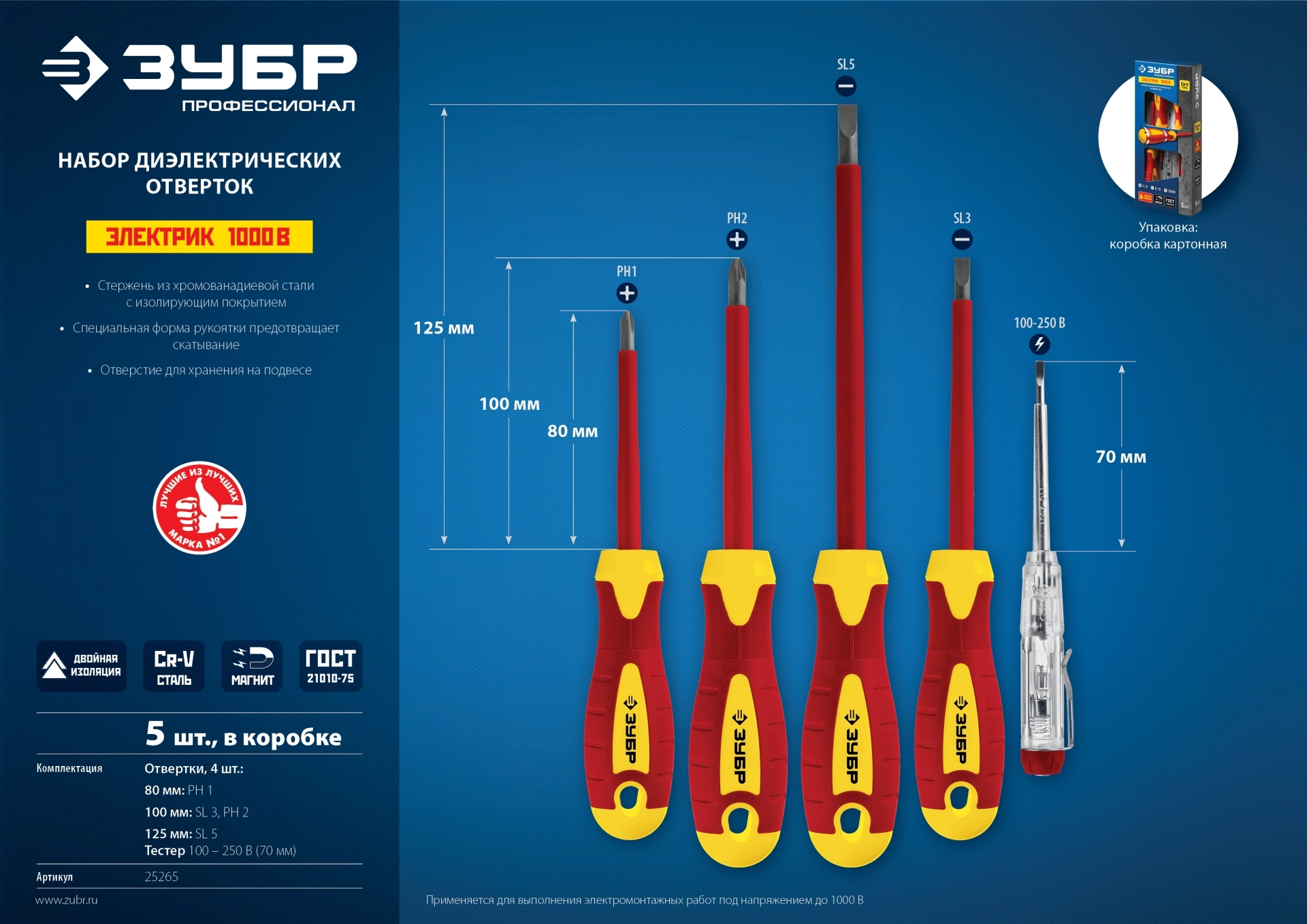 ПроизводителиНабор отверток диэл., 5пр. "Профессионал" (25265) ЗУБР