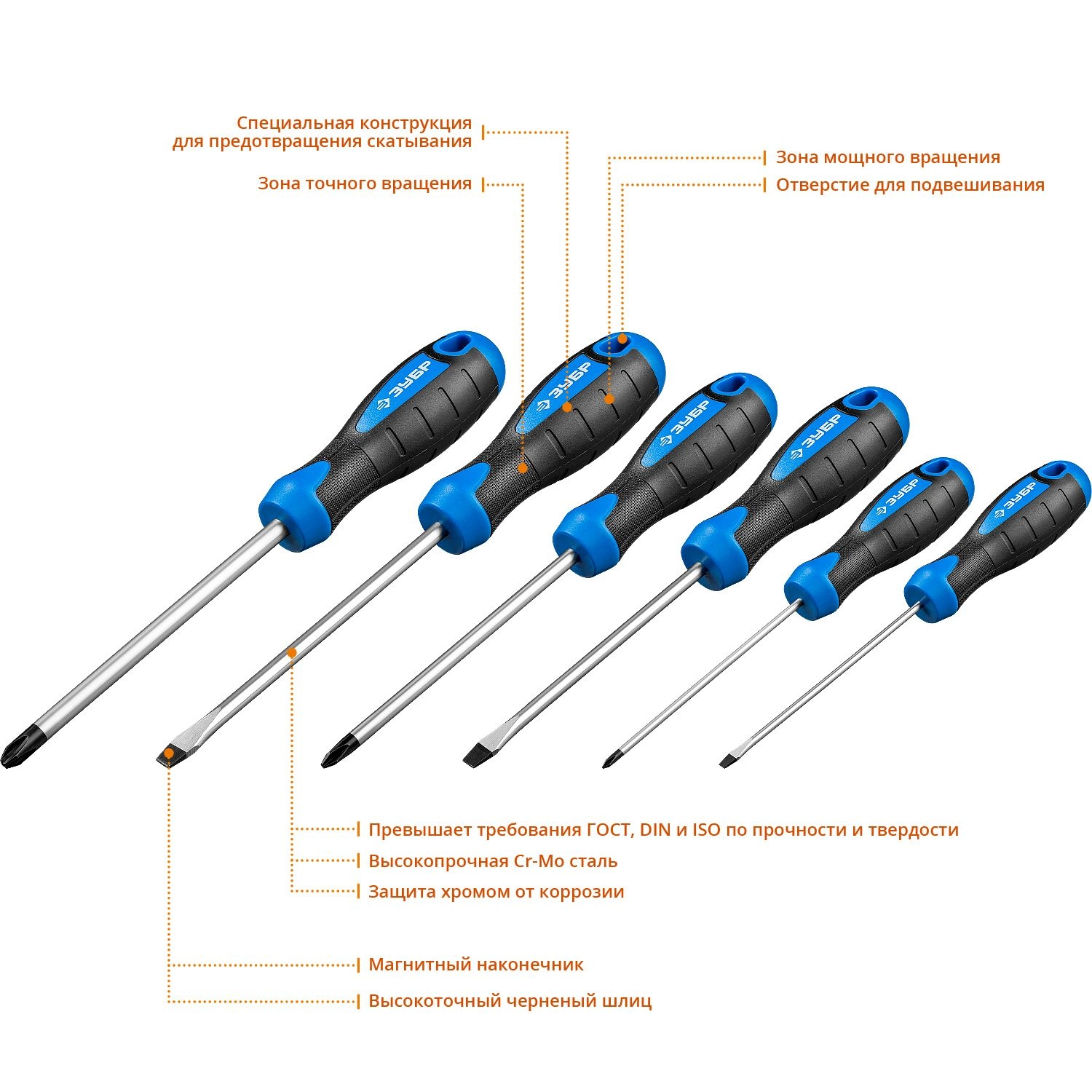 ПроизводителиНабор отверток 6пр. "ПРОФЕССИОНАЛ" (25239) ЗУБР + набор отверток для точных работ STAYER
