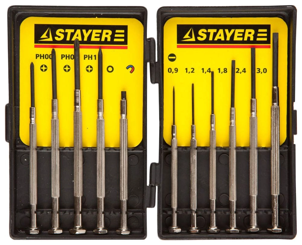 ПРОФИУровень качества. При классификации продуктов, имеющих схожее наименование, но обладающие различными потребительскими свойствами мы приняли следующий Вес факторов: 80% - подтвержденный ресурс, 15% - заявленная производительность/скорость, 5% - субъективные ощущения потребителя. ПодробнееКод товара: 00320271. Отвертки для точных работ, цельнометаллические, 11 предметов STAYER 2560-H11_z01