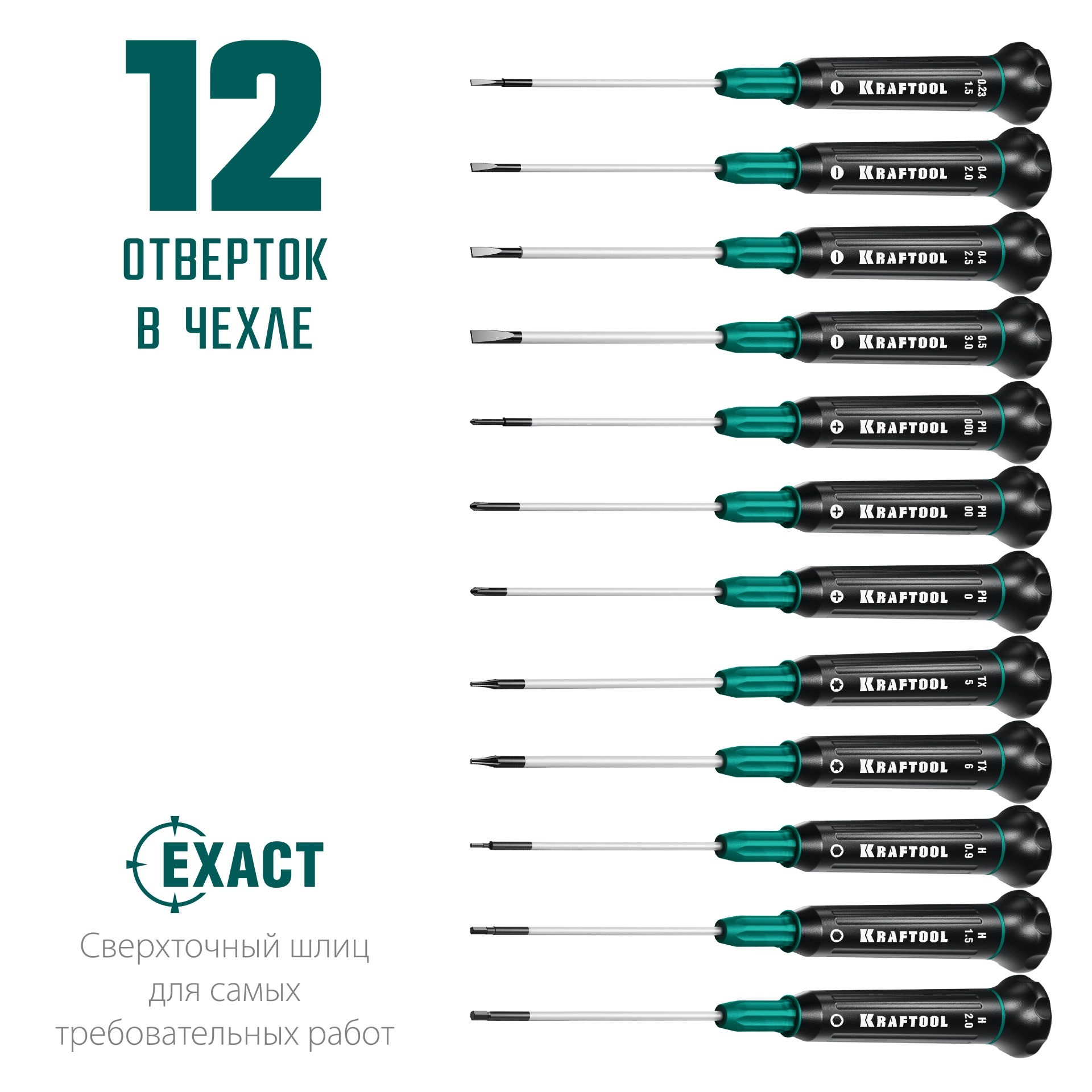 ПроизводителиНабор отверток для точных работ, 12пр. "Precision 12" (25689) KRAFTOOL