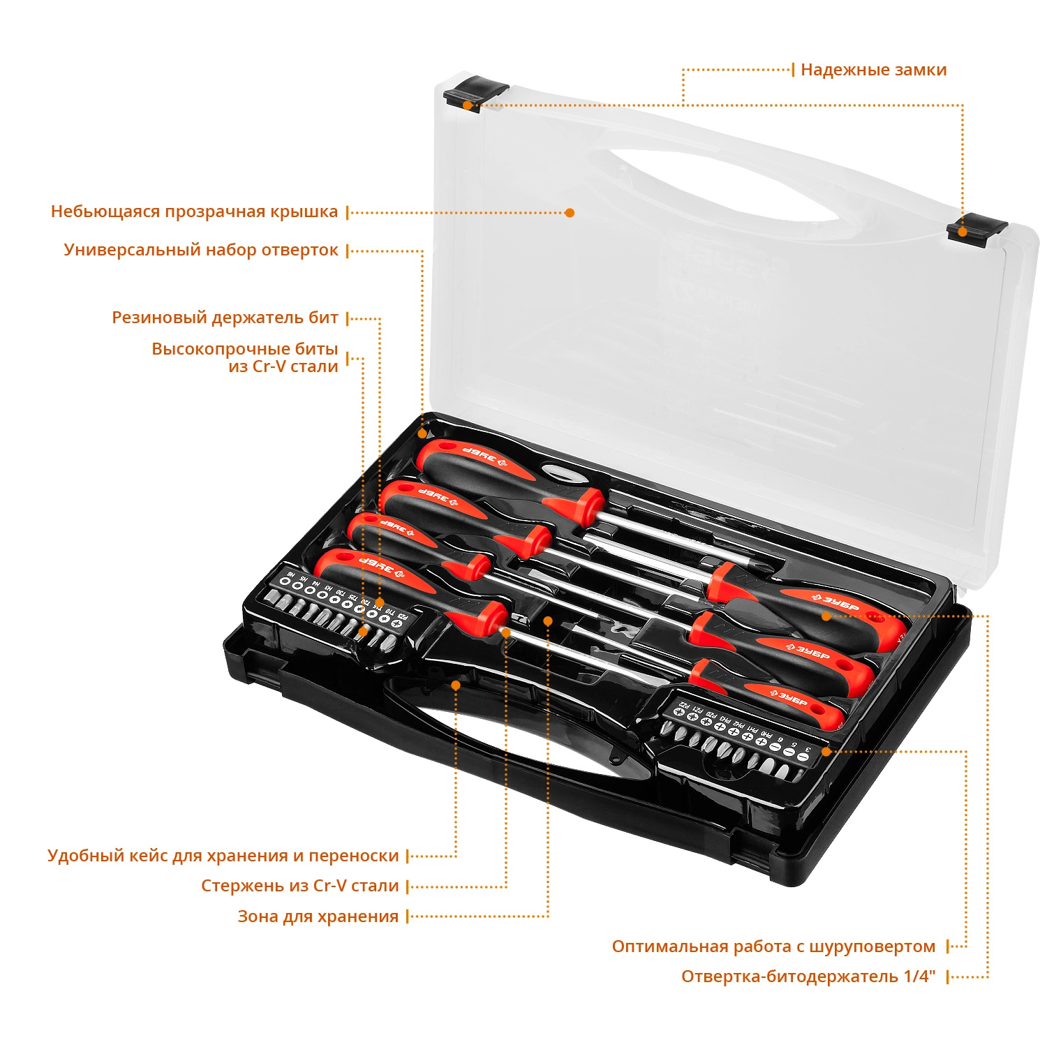 ХарактеристикиАртикул 25027Бренды ЗубрСтрана производства КитайТип изделия набор отвертокВес 0.91Отвертки «ЗУБР» разработаны в соответствии с высокими требованиями профессионалов. Выдерживают высокие нагрузки благодаря высококачественной хромомолибденовой стали стали, закаленной по особой технологии. Имеют большой ресурс, обеспечивают высокое качество выполнения работ при монтаже и демонтаже резьбовых соединений
