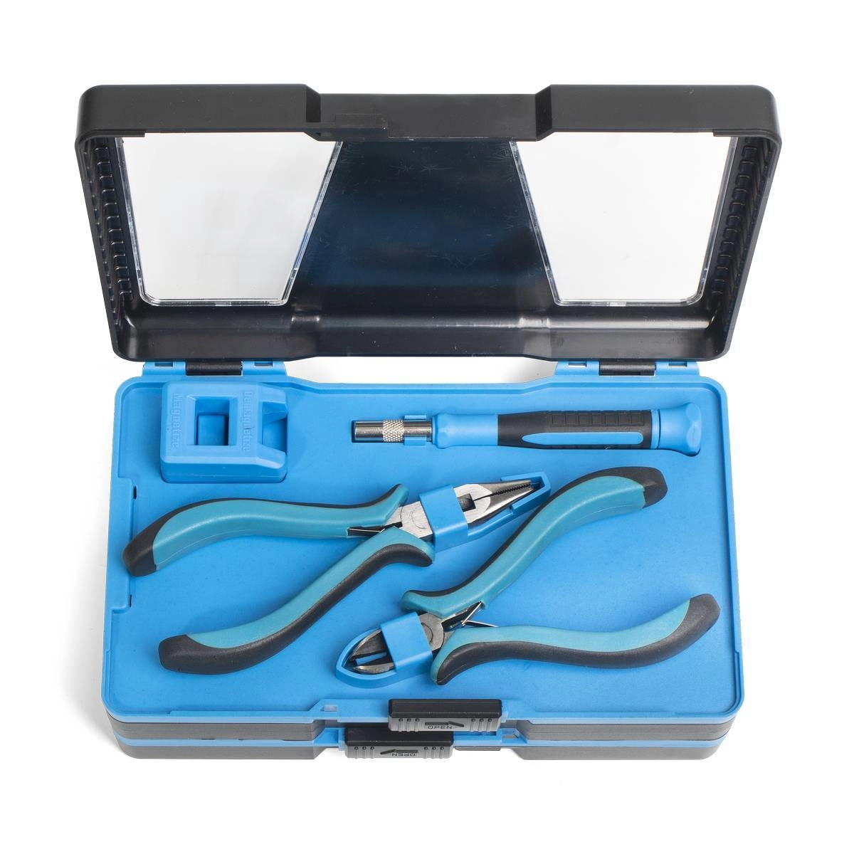 адаптер для установки бит магнитный удлинитель 60 мм головки шестигранные 1/4”: 4, 5, 6, 7, 8, 9, 10, 11, 12 мм реверсивная отвертка для бит 6.35х25 прецизионная отвертка для бит 4х28 намагничиватель/размагничиватель для бит и отверток мини-длинногубцы 125 мм мини-бокорезы 110 мм пластиковый кейс