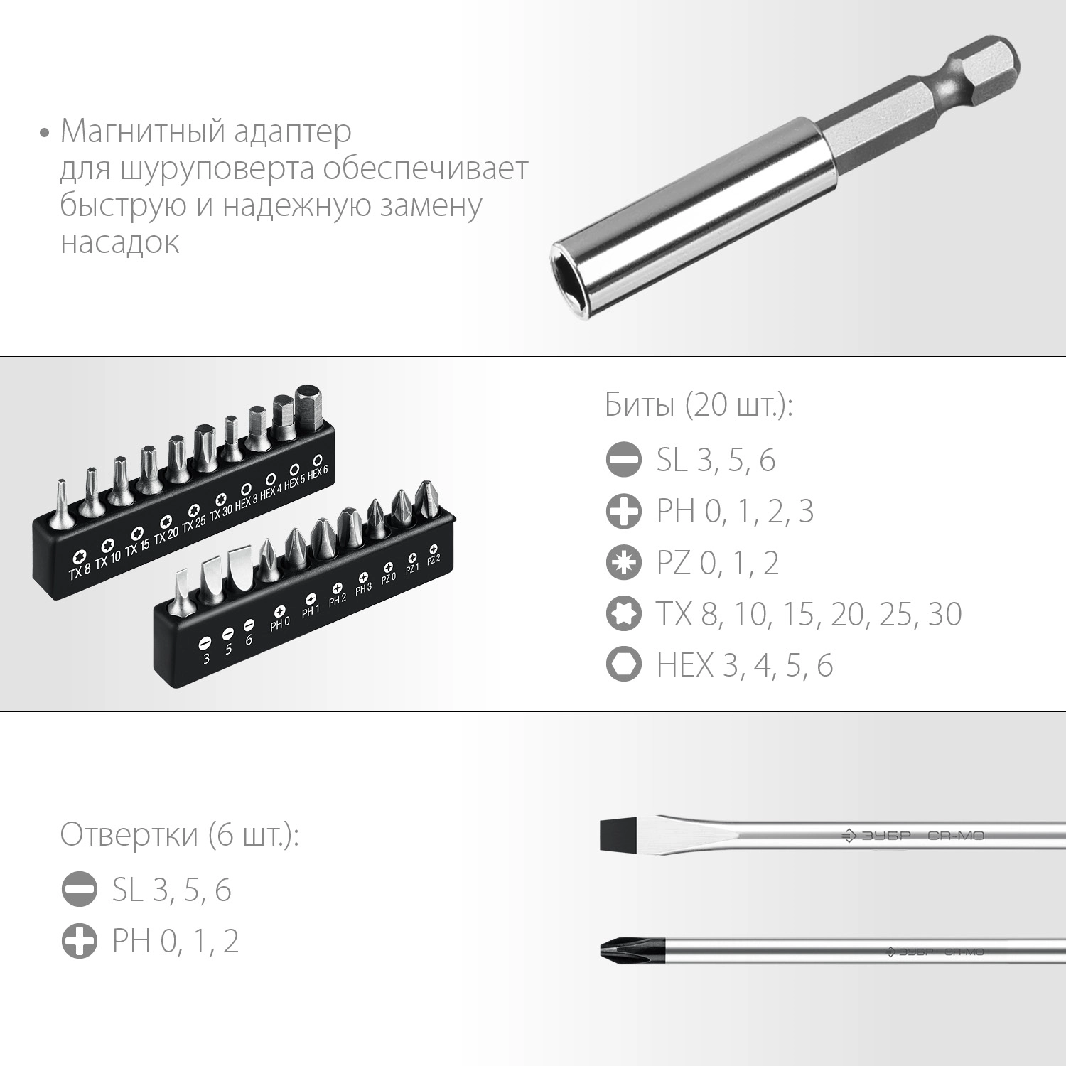 ПроизводителиНабор отверток, 28пр., в боксе (25240_z01) ЗУБР