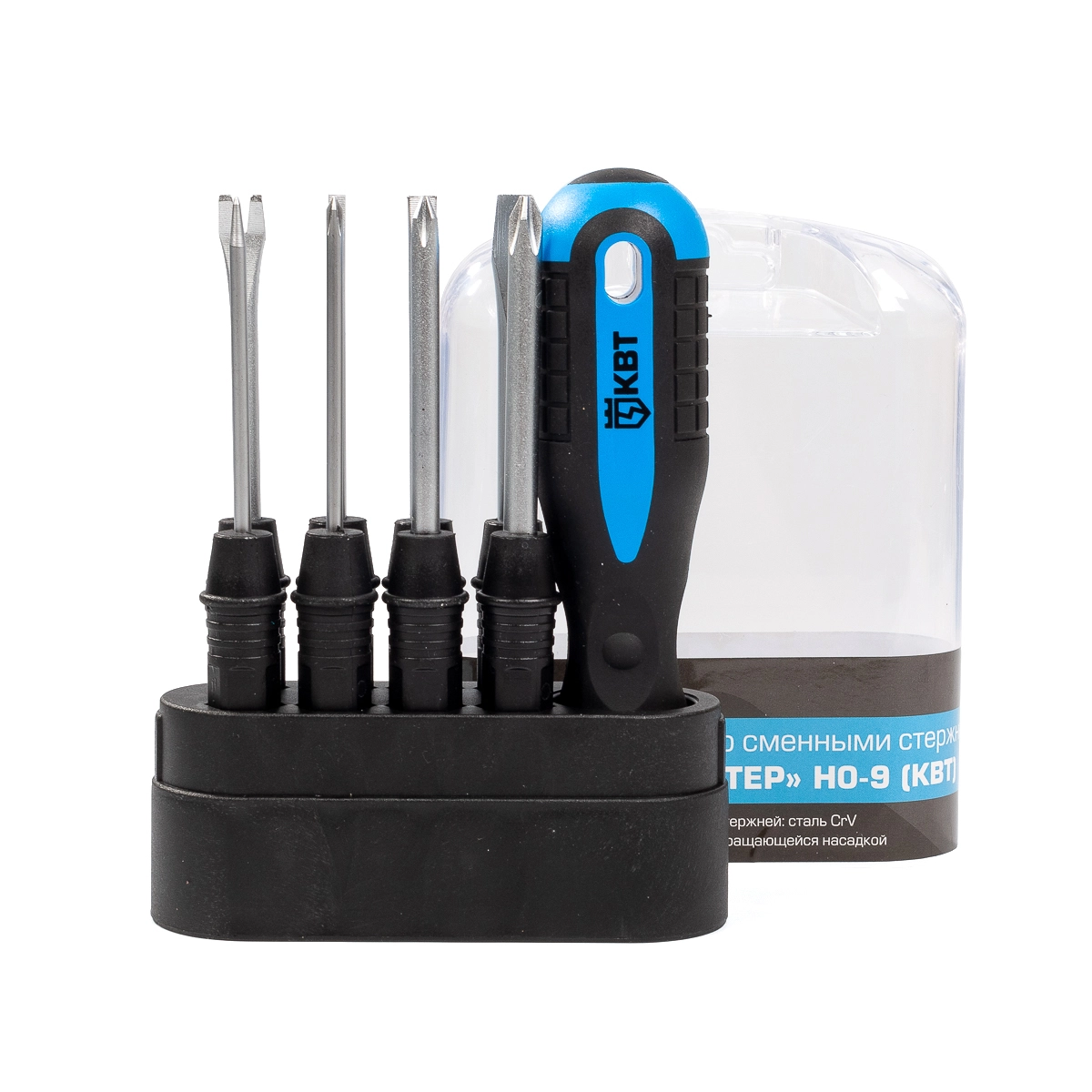 Отвертка со сменными стержнями НО-9, 9 предметов, серия «МАСТЕР», КВТ 78708 — набор отверток в компактном пластиковом пенале для проведения слесарно-монтажных работ
