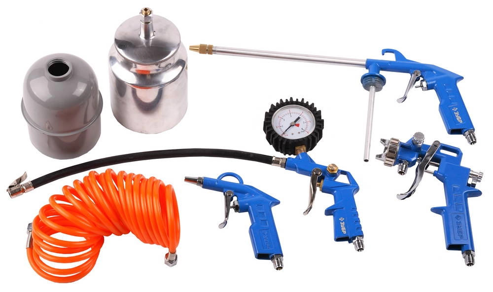 ПРОФИУровень качества. При классификации продуктов, имеющих схожее наименование, но обладающие различными потребительскими свойствами мы приняли следующий Вес факторов: 80% - подтвержденный ресурс, 15% - заявленная производительность/скорость, 5% - субъективные ощущения потребителя. ПодробнееКод товара: 0013535(2)Предназначен для нанесения всех видов лакокрасочных и защитных покрытий на поверхности из пластика, металла, дерева, керамики, для продувки и очистки поверхностей и отверстий от загрязнений сжатым воздухом, для накачивания автомобильных шин. Используются вместе с компрессором.Набор качественного пневмоинструмента. Используется для нанесения лакокрасочных и антикоррозионных работ, а также в комплекте пистолет для продувки и подкачки шин