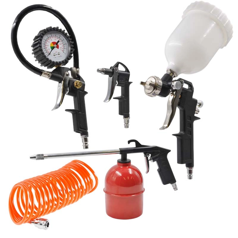 ПРОФИУровень качества. При классификации продуктов, имеющих схожее наименование, но обладающие различными потребительскими свойствами мы приняли следующий Вес факторов: 80% - подтвержденный ресурс, 15% - заявленная производительность/скорость, 5% - субъективные ощущения потребителя. ПодробнееКод товара: 0068588(0)Состоит из 5 элементов: краскопульт HVLP, пистолет продувочный, пистолет моечный, пистолет для подкачки шин с манометром, шланг спиральныйУниверсальный набор для выполнения широкого спектра работ.Производитель: Taizhou Beright Air Tool Co., Ltd., Китай