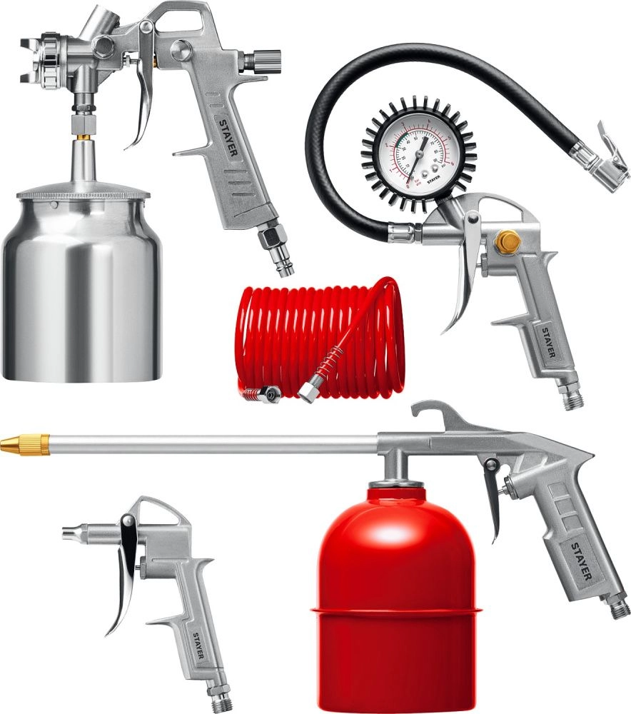 ПроизводителиНабор пневм. универс.: краскораспылитель, пистолеты, шланг, 5 пр. "ORION-5S" (06487-H5_z01) STAYER