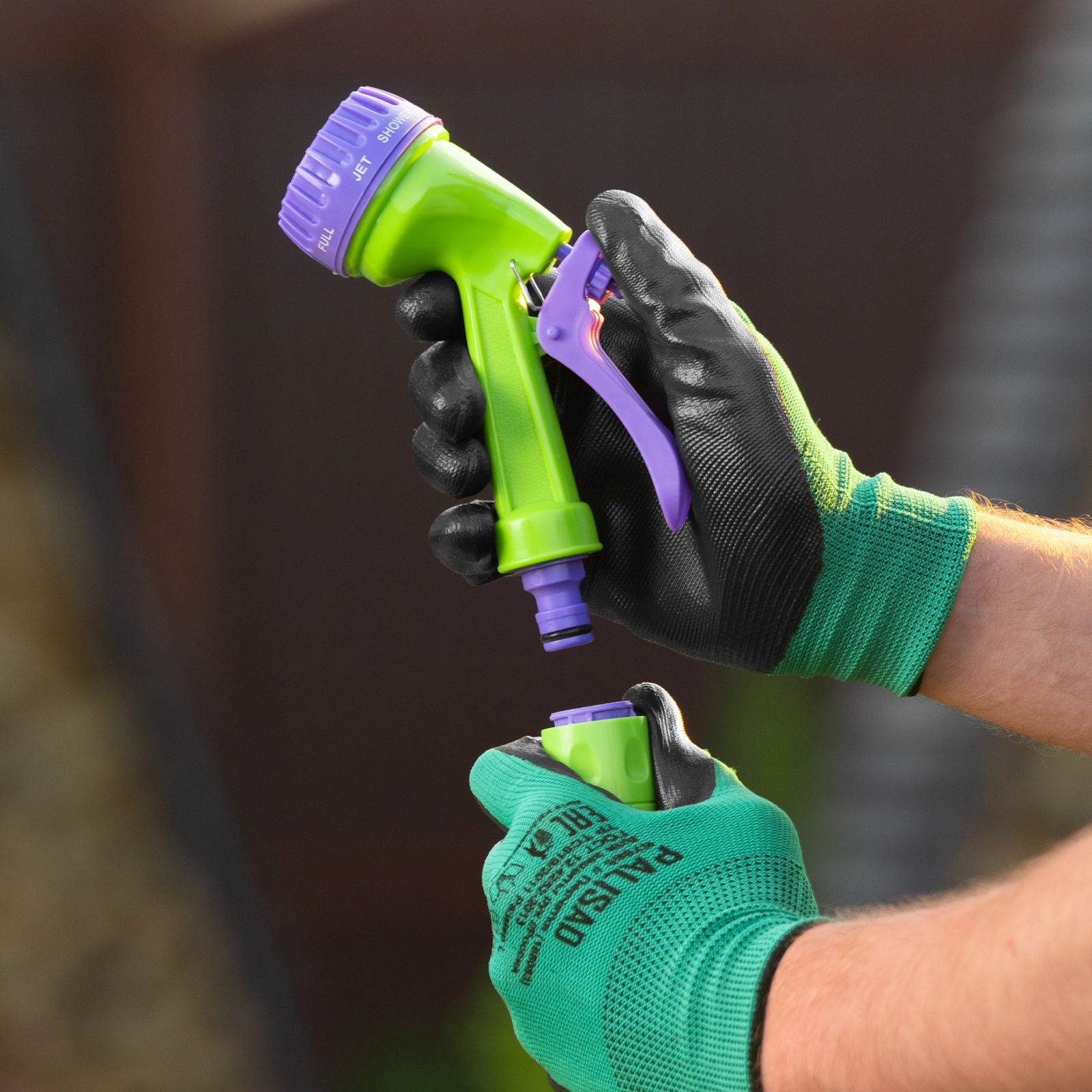 Конструкцией пистолета-распылителя предусмотрена возможность регулировки мощности и типа струи, благодаря чему можно выбрать оптимальный режим полива.