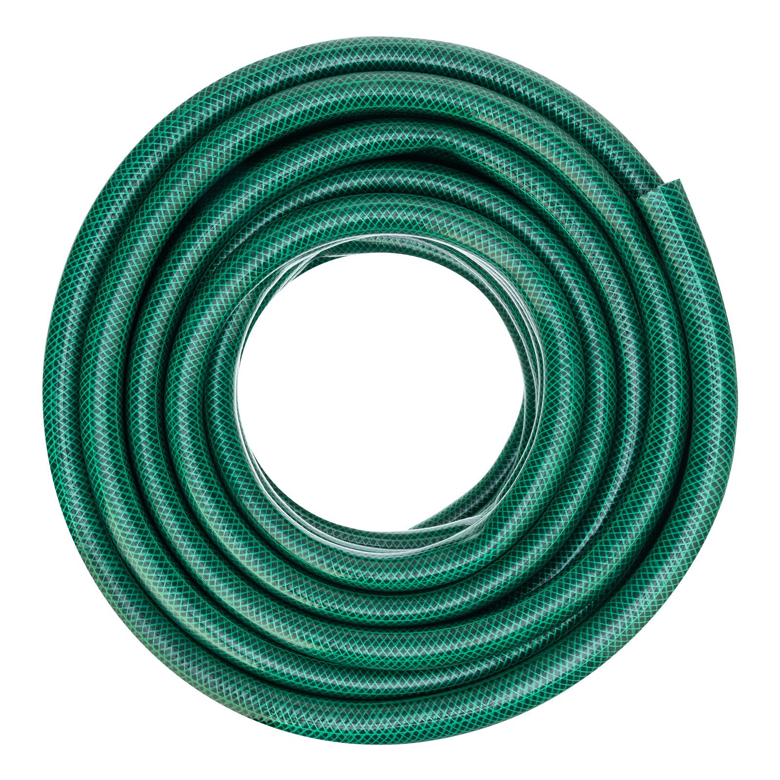 Трехслойный шланг с армирующим слоем отличается повышенной прочностью и выдерживает давление до 10 бар.