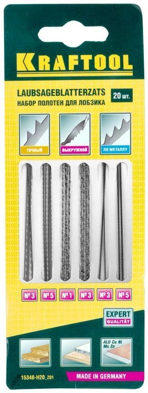 ЭКСПЕРТУровень качества. При классификации продуктов, имеющих схожее наименование, но обладающие различными потребительскими свойствами мы приняли следующий Вес факторов: 80% - подтвержденный ресурс, 15% - заявленная производительность/скорость, 5% - субъективные ощущения потребителя. ПодробнееКод товара: 0017870Профессиональные полотна имеют зубья с прецизионной геометрией, что обеспечивает высокую точность, скорость и качество выполняемых работ.ХарактеристикиАртикул 15348-H20_z01Бренды KraftoolСтрана производства РоссияКоличество штук в комплекте 20Вес 0.01Профессиональные полотна имеют зубья с прецизионной геометрией, что обеспечивает высокую точность, скорость и качество выполняемых работ.