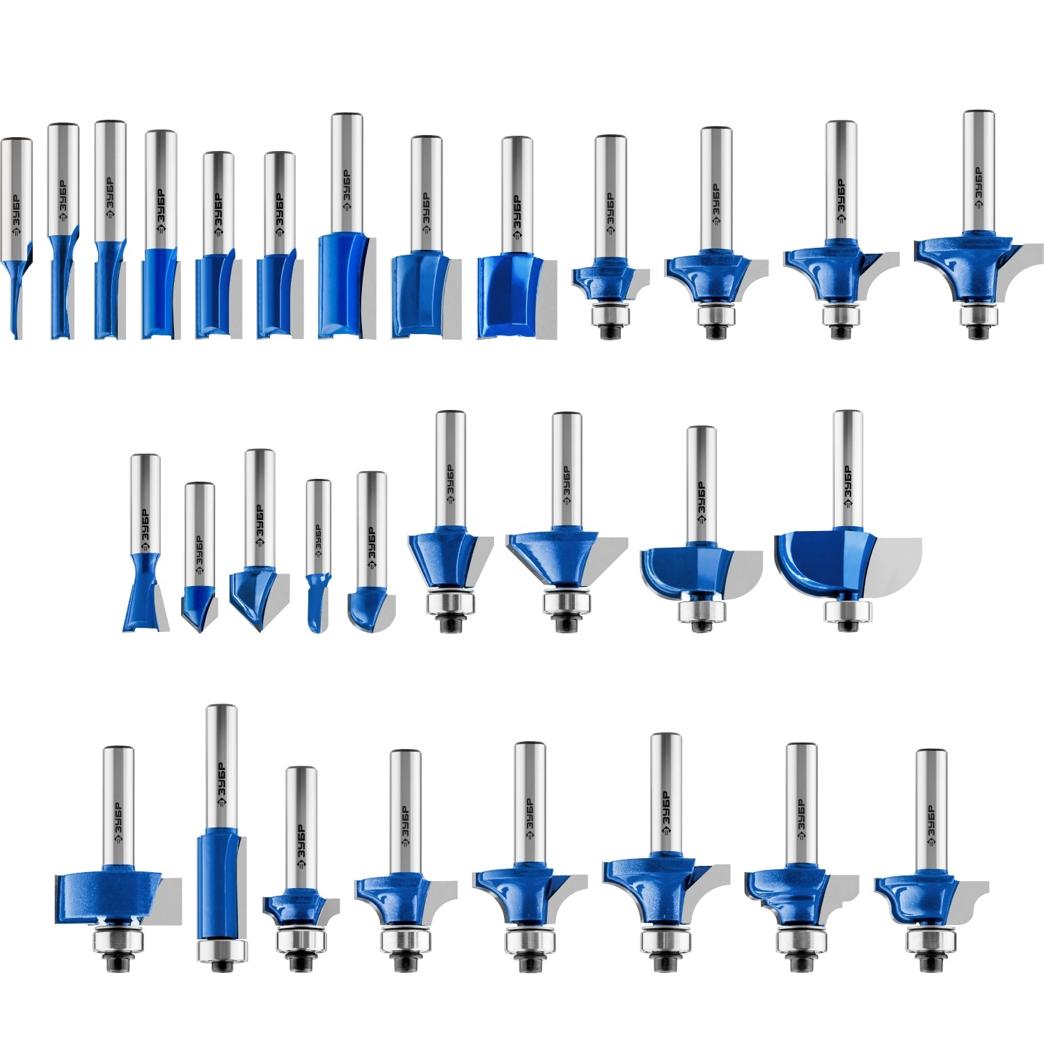ХарактеристикиАртикул 28796-H30Бренды ЗубрСтрана производства КитайКоличество штук в комплекте 30Диаметр подшипника, мм 8Вес 1.88Набор фрез отлично подходит для профилирования кромок, изготовления декоративных пазов и рисунков, фрезерования канавок при работе с различными видами древесины.