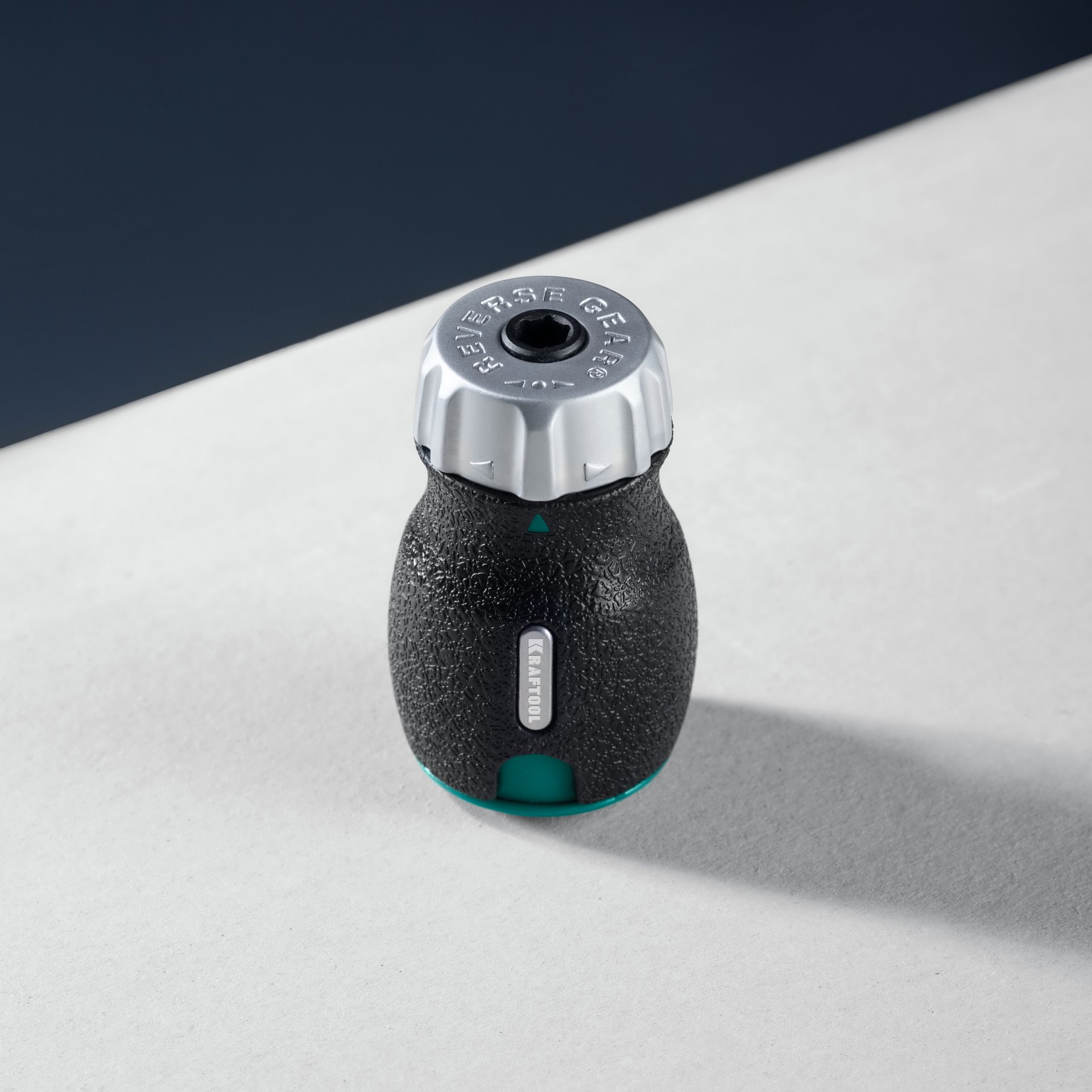 Бренд: KRAFTOOLКомпактная реверсивная отвертка c прочным цельнометалическим трещоточным механизмом. Небольшой размер и хранение бит внутри рукоятки дают возможность всегда иметь отвертку под рукой