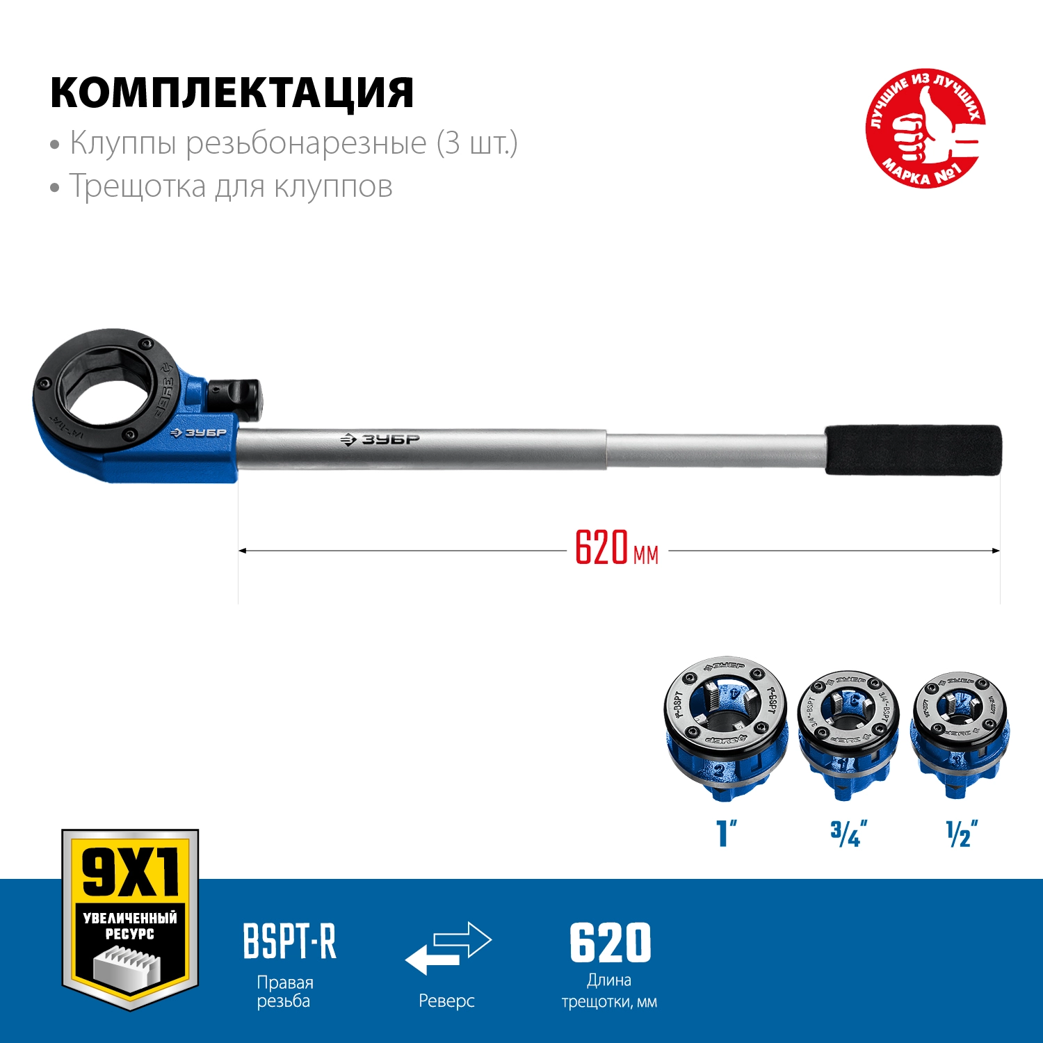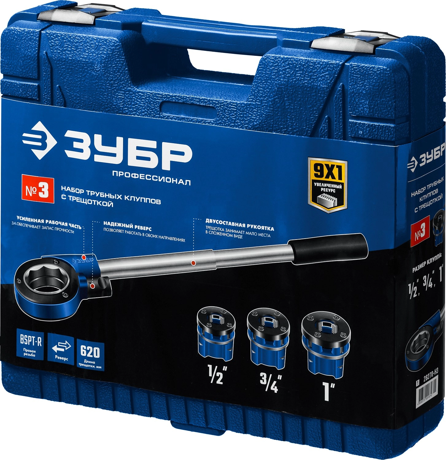 ПроизводителиКлупп резьбонарезной ручной до 1" с трещоткой 620мм "ПРОФЕССИОНАЛ" (28270-H3_z01) ЗУБР