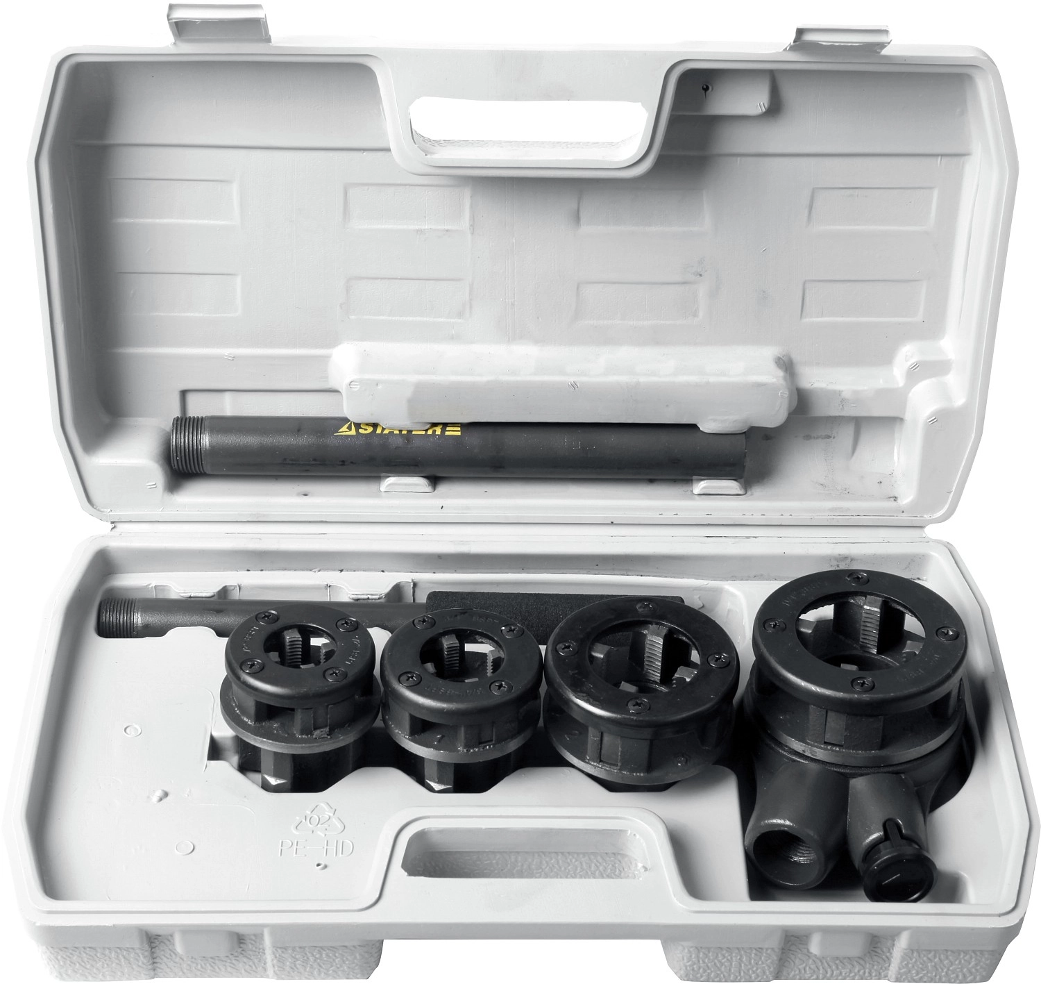 - Набор включает в себя популярные размеры клуппов для нарезания резьбы на металлических трубах