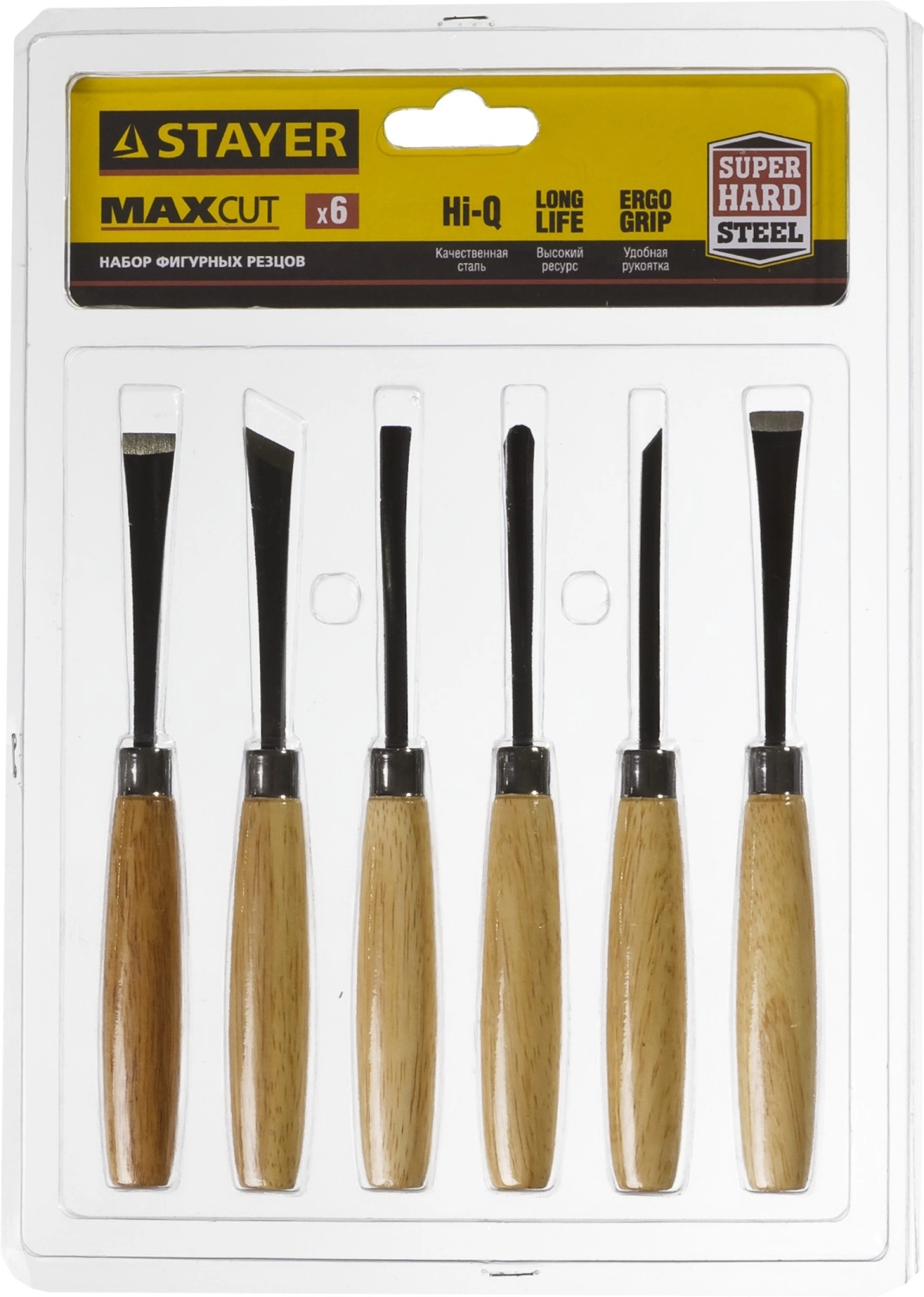 ПроизводителиРезцы фигурные, с деревянной ручкой, 6шт. (1832-H6) STAYER
