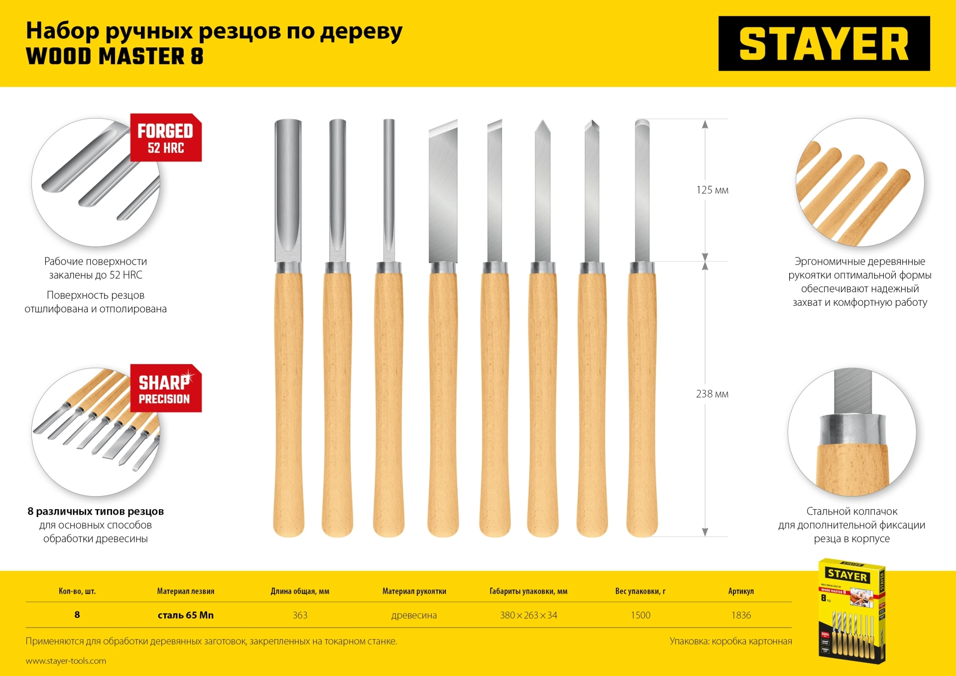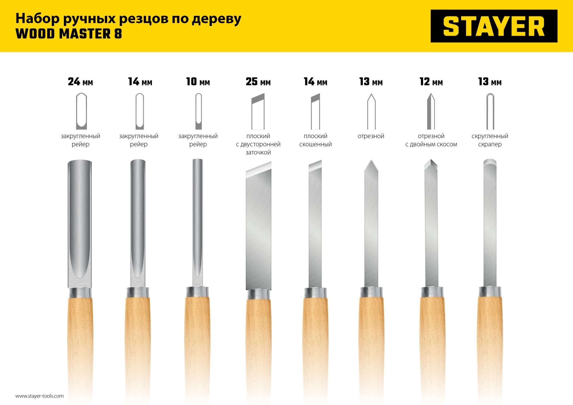 ПроизводителиНабор ручных резцов по дереву, 8пр. " Wood Master" (1836) STAYER