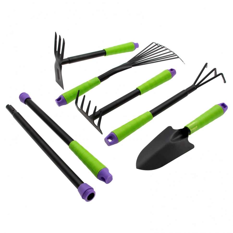 Комплектация: Мотыжка - 1 шт, Рыхлитель 3-зубый - 1 шт, Совок - 1 шт, Грабли 9-зубые - 1 шт, Грабли 5-зубые - 1 шт, Рукоятка - 1 шт, Штанга - 1 шт, Упаковка - 1 штПроизводитель: ООО "Мир инструмента", Россия