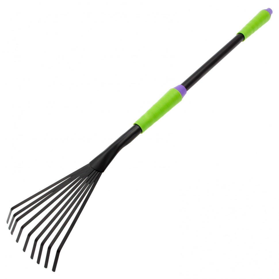 Веерные грабли имеют плоские зубья, которыми удобно сгребать листву и мелкий садовый мусор.