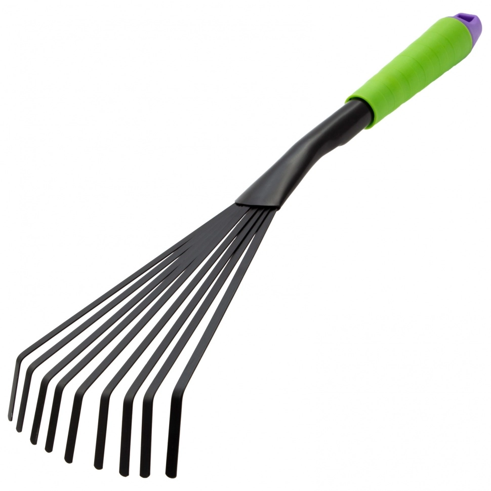 Веерные грабли имеют плоские зубья, которыми удобно сгребать листву и мелкий садовый мусор.