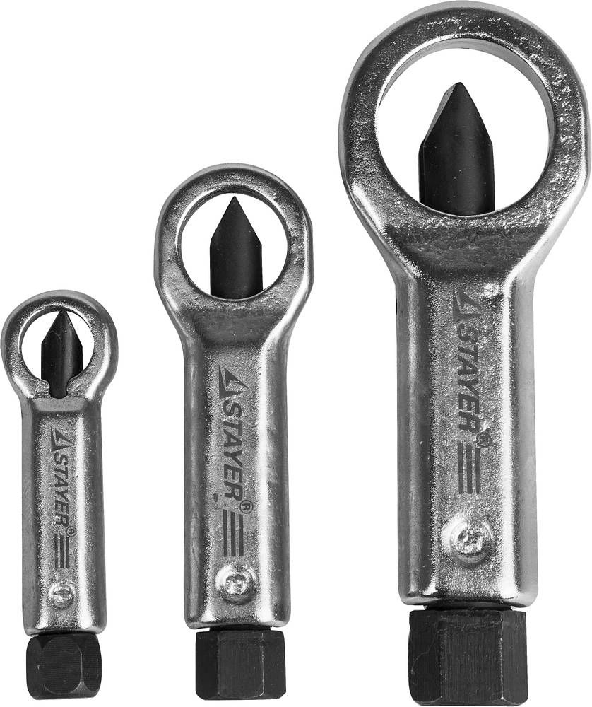 ПроизводителиНабор съемников для прикипевших гаек (9-12, 12-16, 16-22мм), 3шт. (43213-H3) STAYER