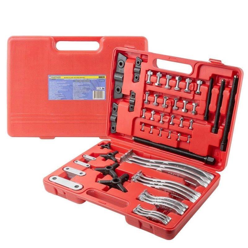 ПроизводителиНабор съемников подшипников двух- трехзахватных, 72пр. (75мм, 100мм, 150мм, 200мм)(PA-66624) Partner