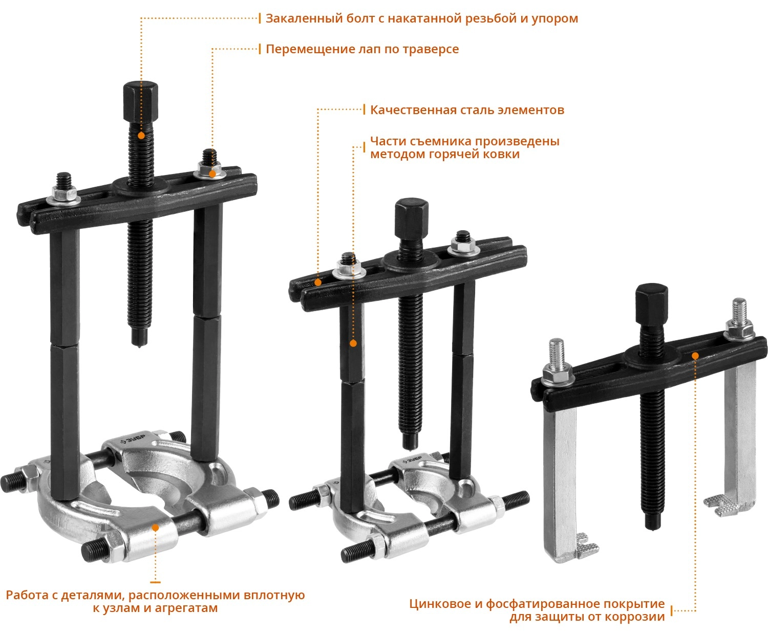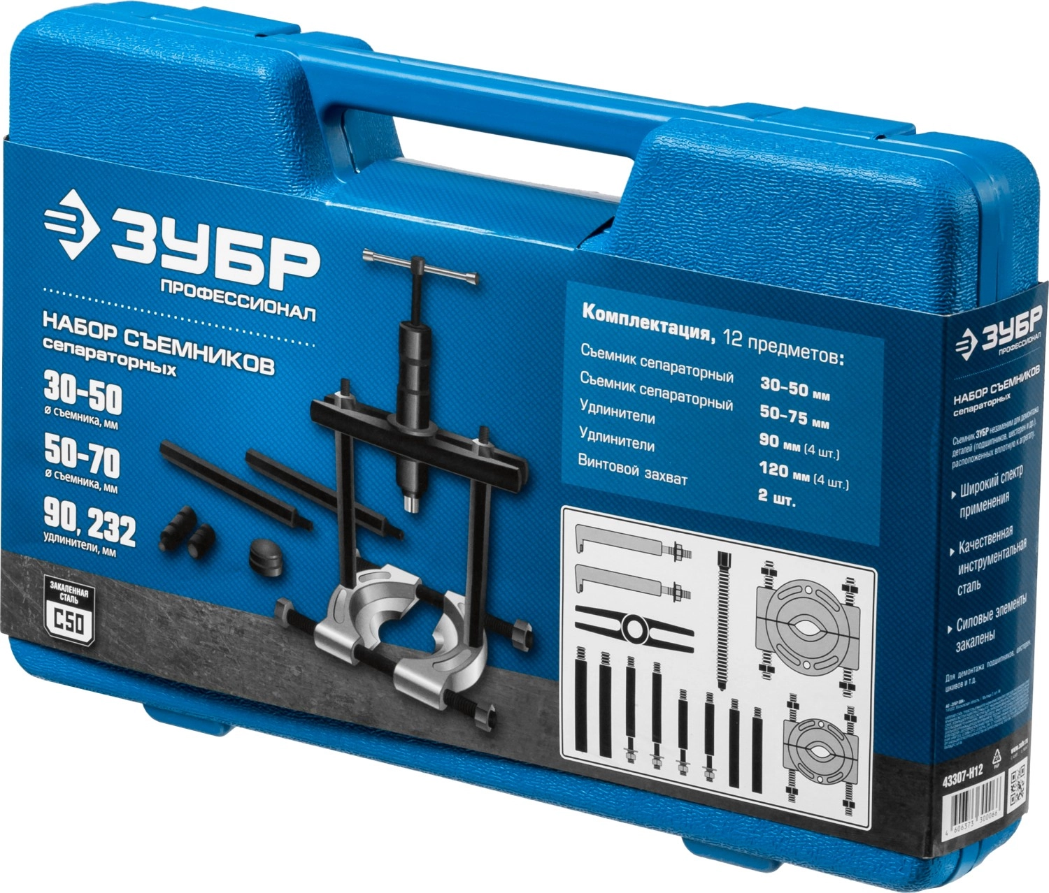 ПроизводителиНабор съемников сепараторных, 30-50мм, 50-75мм "Профессионал" (43307-H12) ЗУБР