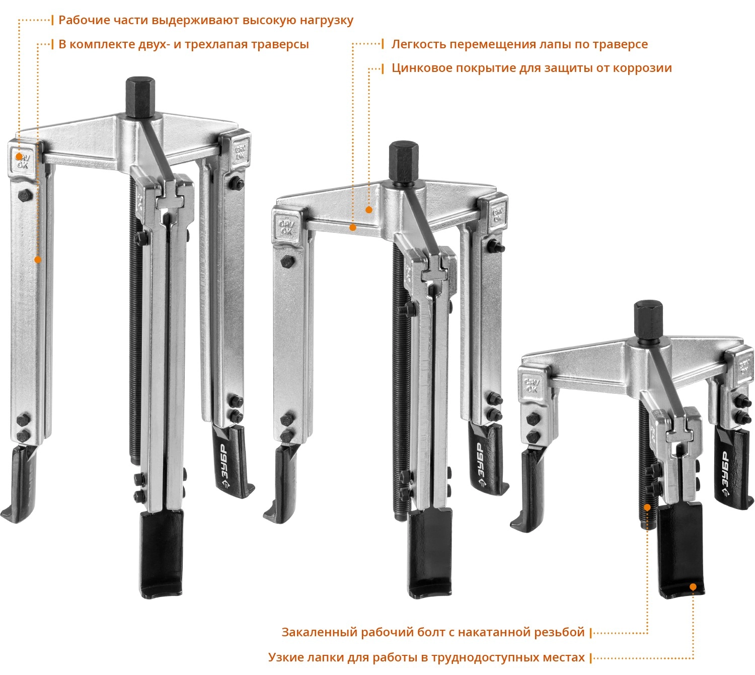 В комплекте двух- и трехлапая траверса, а так же захваты трех длин.
