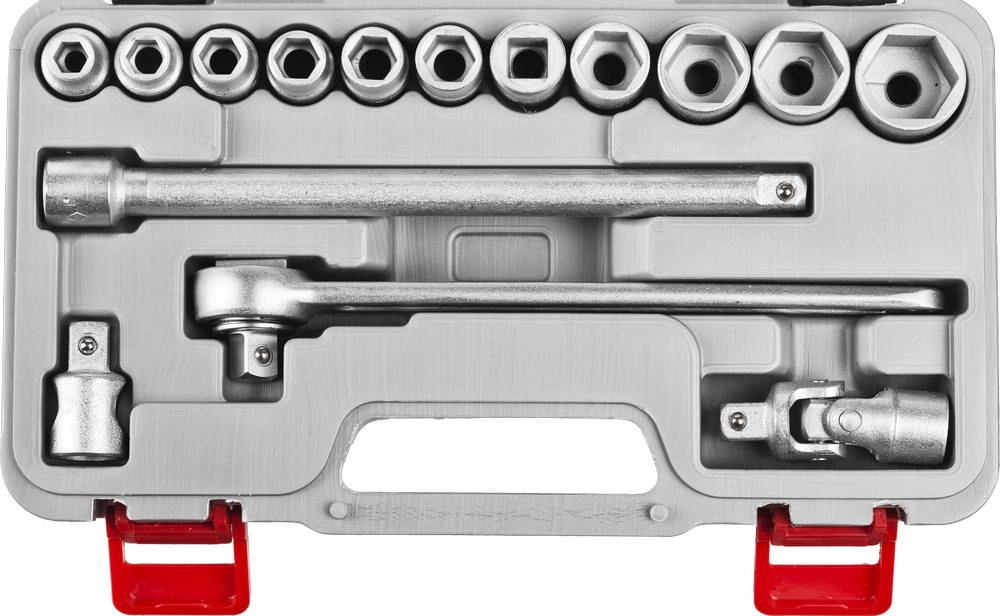 ПроизводителиНабор головок с трещоткой и удлинителем 1/2" 10-27мм, 15пр. №2Д (2761-20_z01) НИЗ