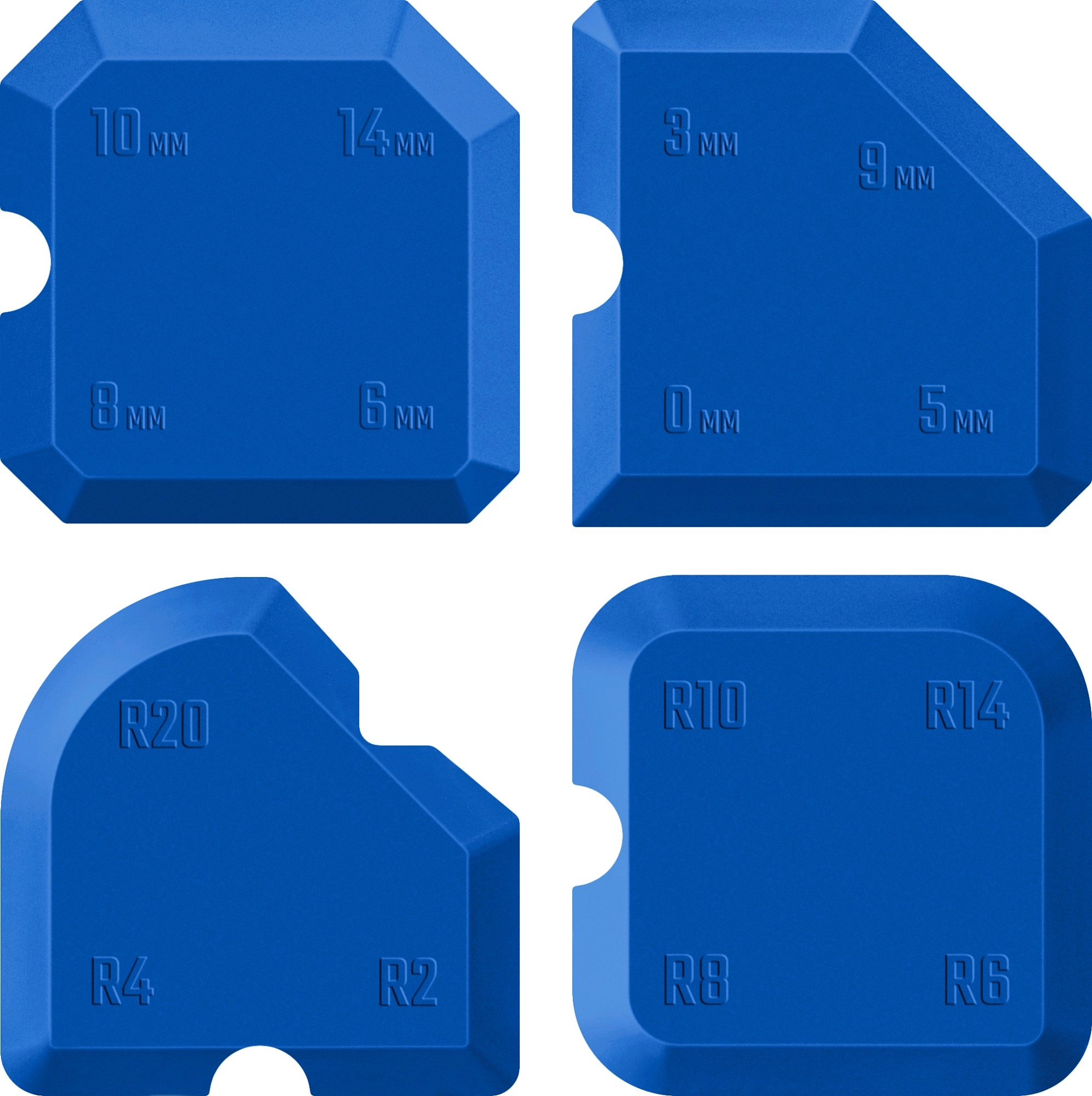 4 небольших силиконовых шпателя имеют по 4 различных размера и радиуса для придания формы шву герметика.