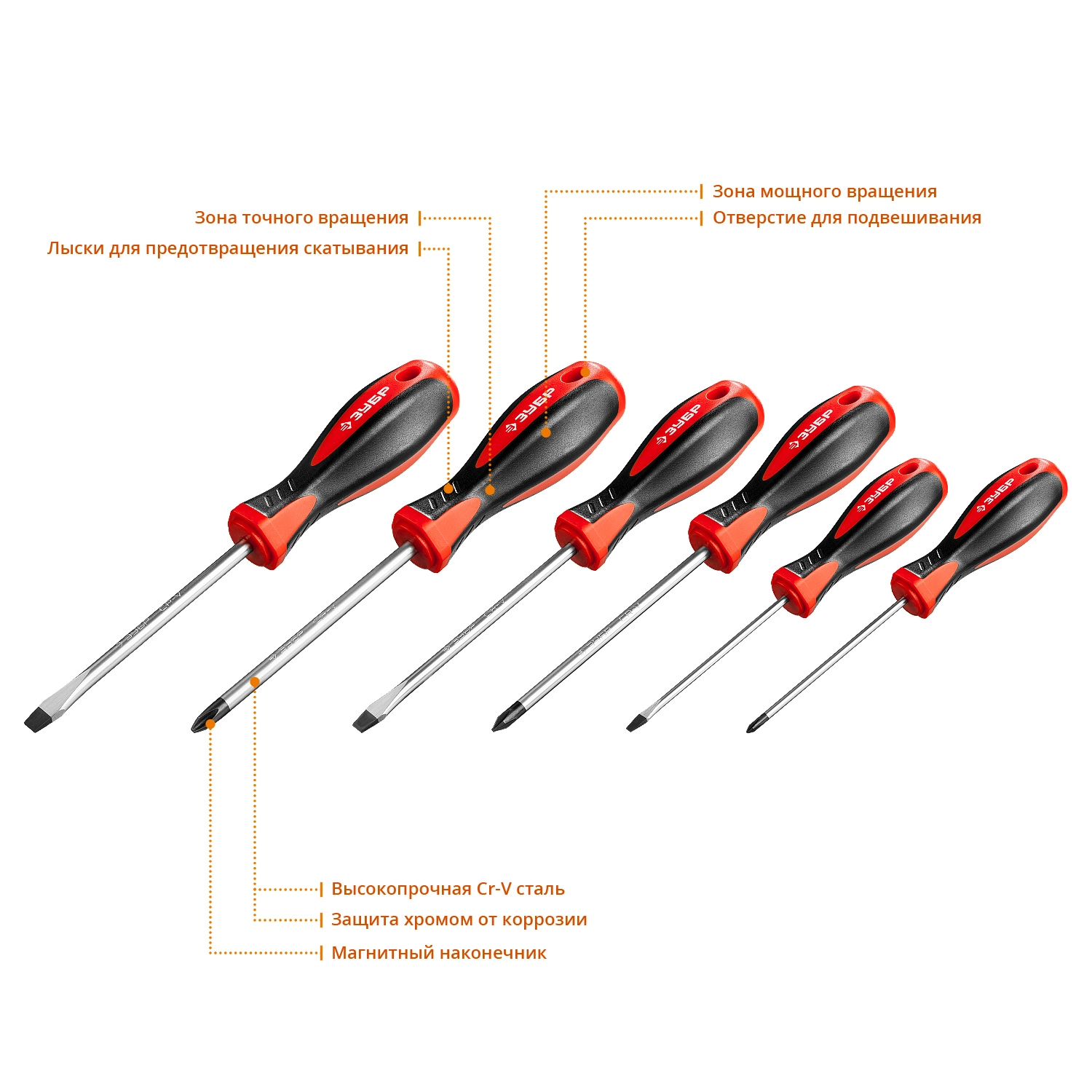 ПроизводителиНабор отверток 6пр., двухкомп. рук. Cr-V "МАСТЕР" (25066) ЗУБР