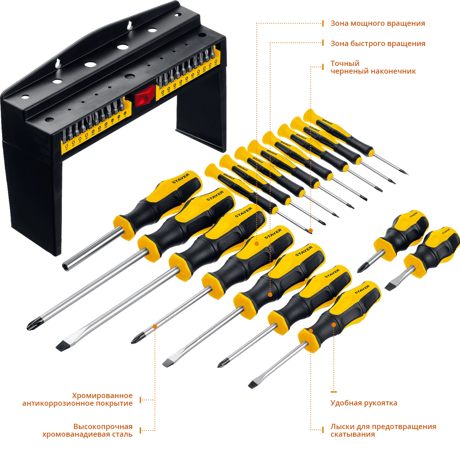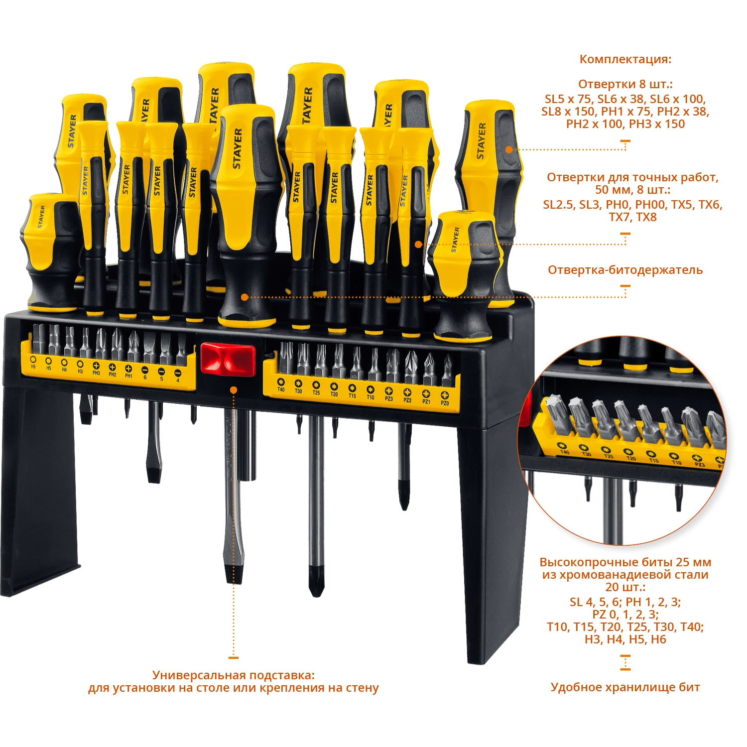 ПроизводителиНабор отверток, отверток для точных работ, бит, 37пр. "MAX Range-37" (25312-H37) STAYER