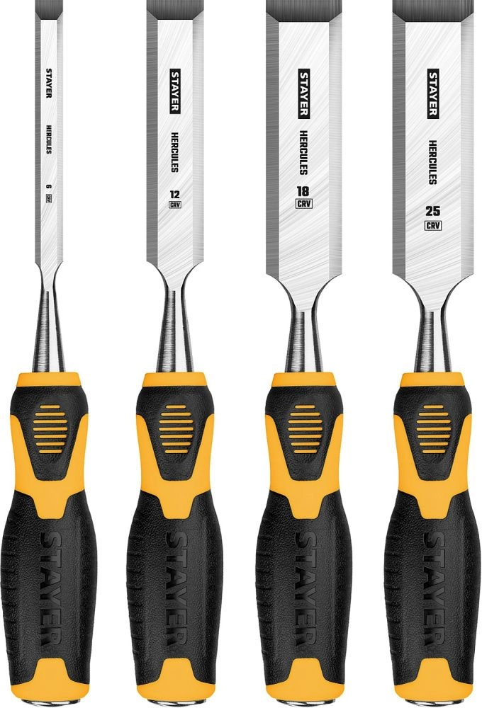 ПроизводителиНабор стамесок-долот с двухкомпонентными ручками, 6/12/18/25мм, 4шт. (18205-H4) STAYER