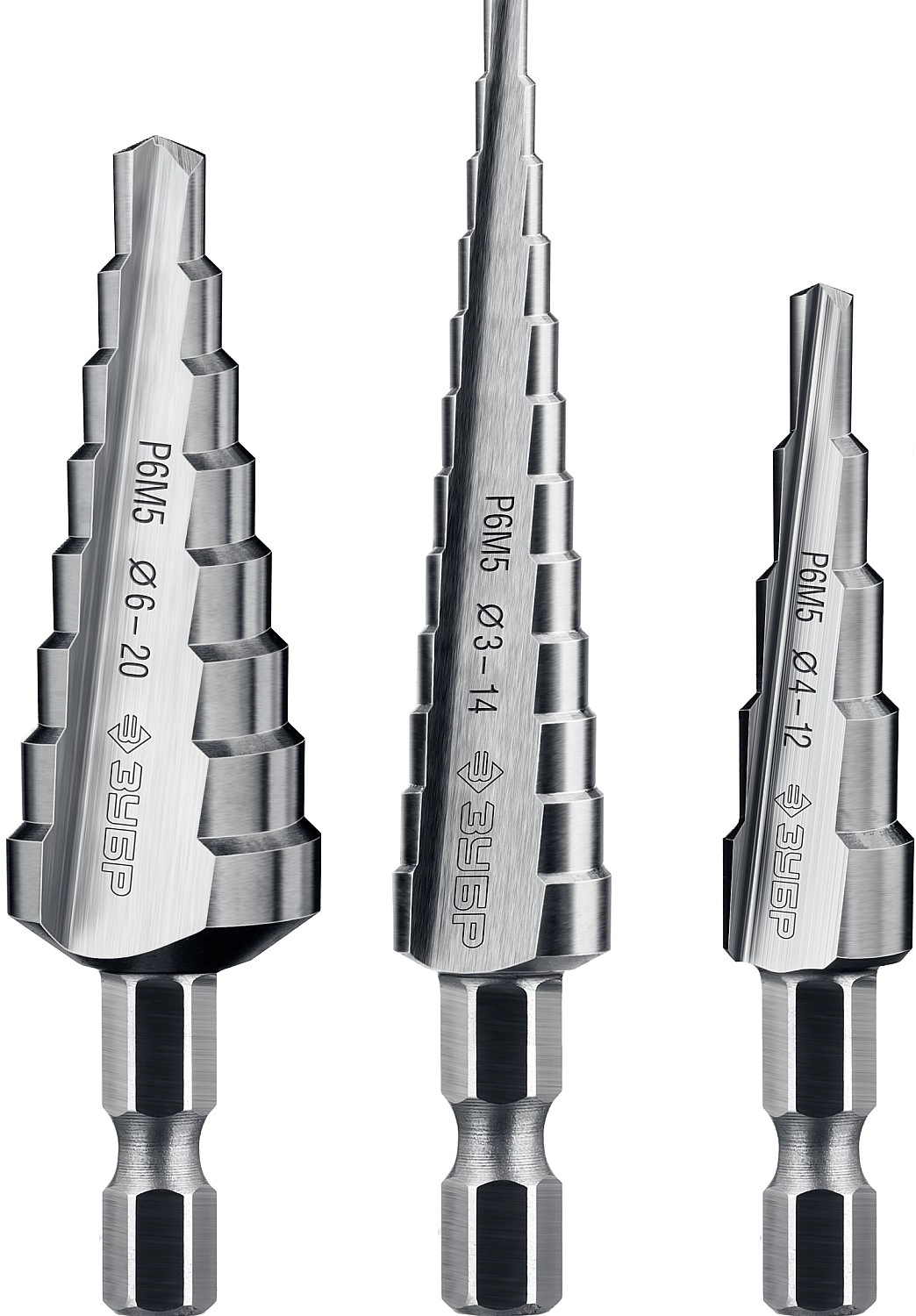 ПроизводителиНабор сверл по металлу ступенчатых 3-14, 4-12, 6-20 мм, HSS, 3шт. (29670-3-20-H3_z01) ЗУБР