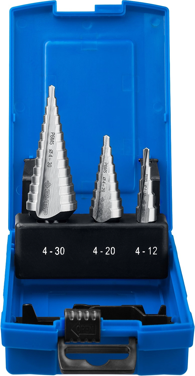 ПроизводителиНабор сверл по металлу ступенчатых 4-12, 4-20, 4-30 мм, HSS, 3шт. (29670-4-30-H3_z01) ЗУБР