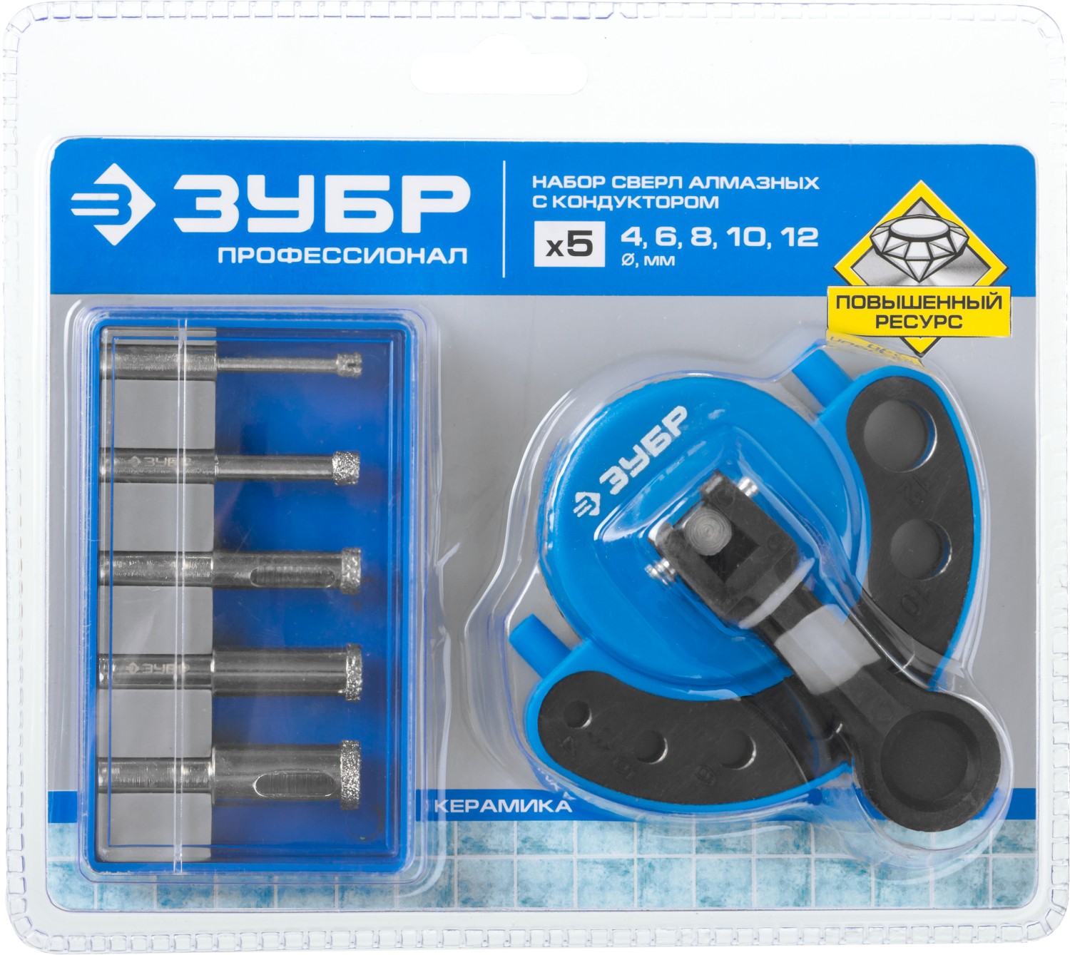 ПроизводителиНабор сверл алмазных трубчатых по кафелю и стеклу с кондуктором, d=4, 6, 8, 10, 12 мм, 5 предметов,