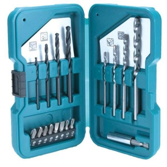 ПроизводителиНабор сверл для дерева, металла, кирпича, биты 25мм, магн.держатель, 17пр. (D-40200) MAKITA