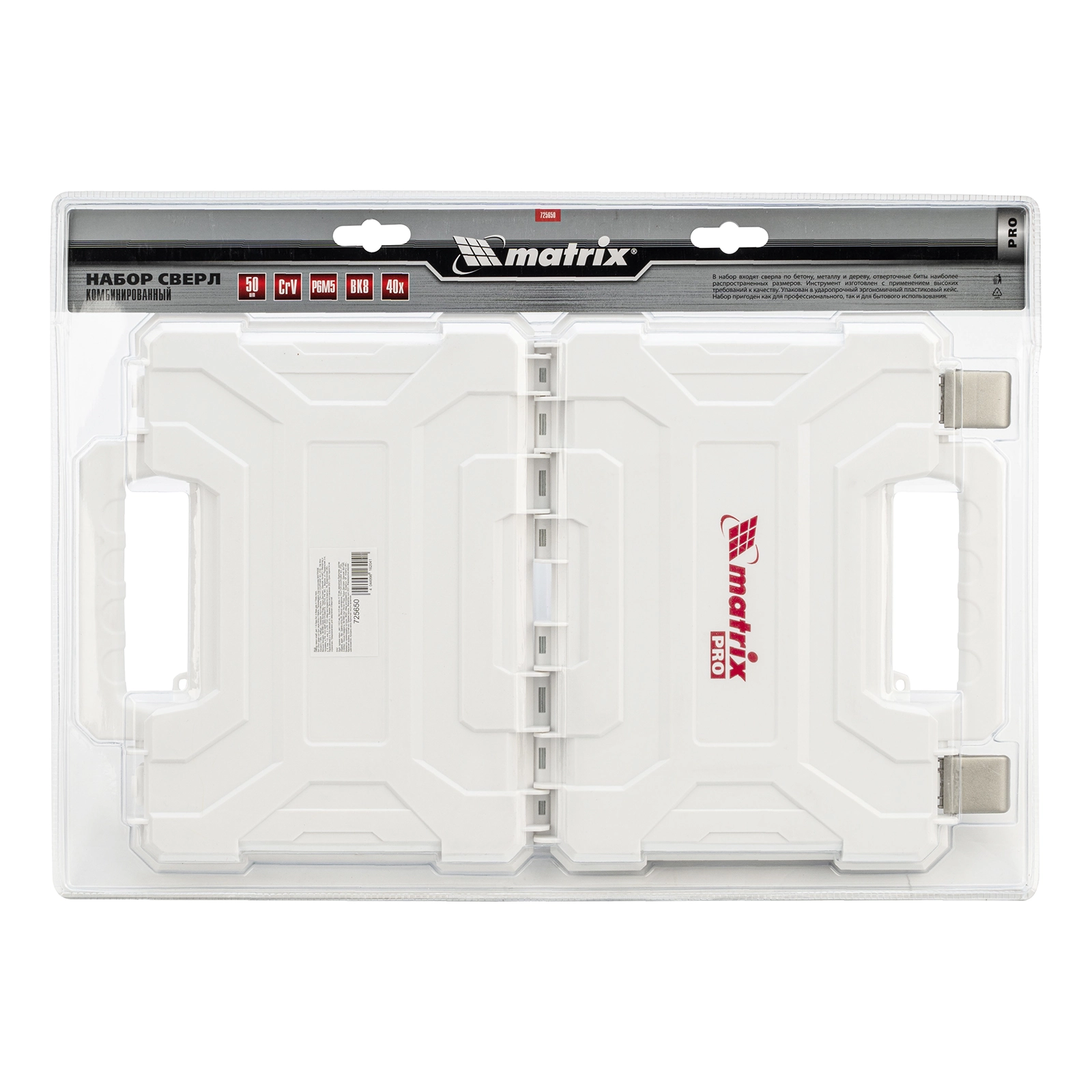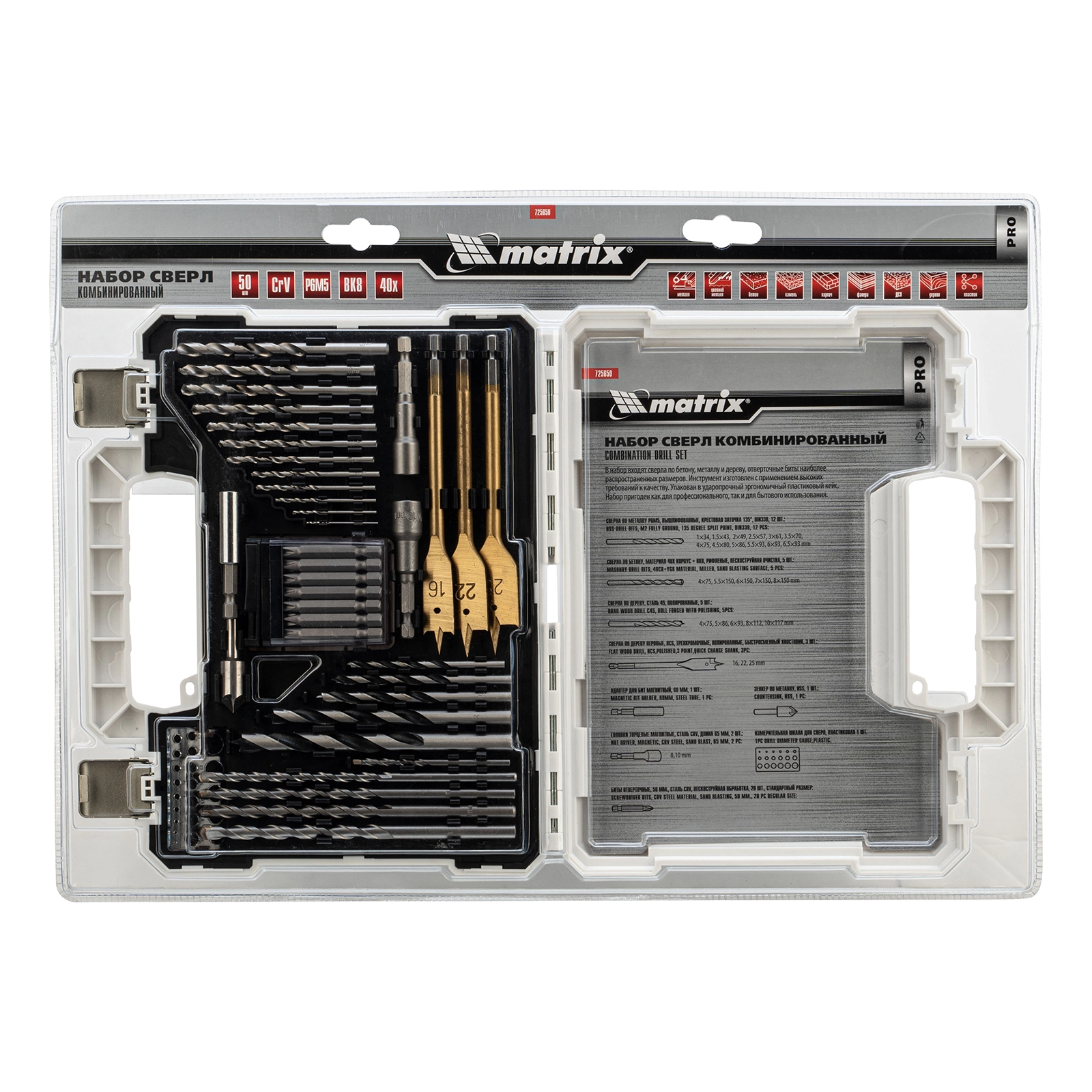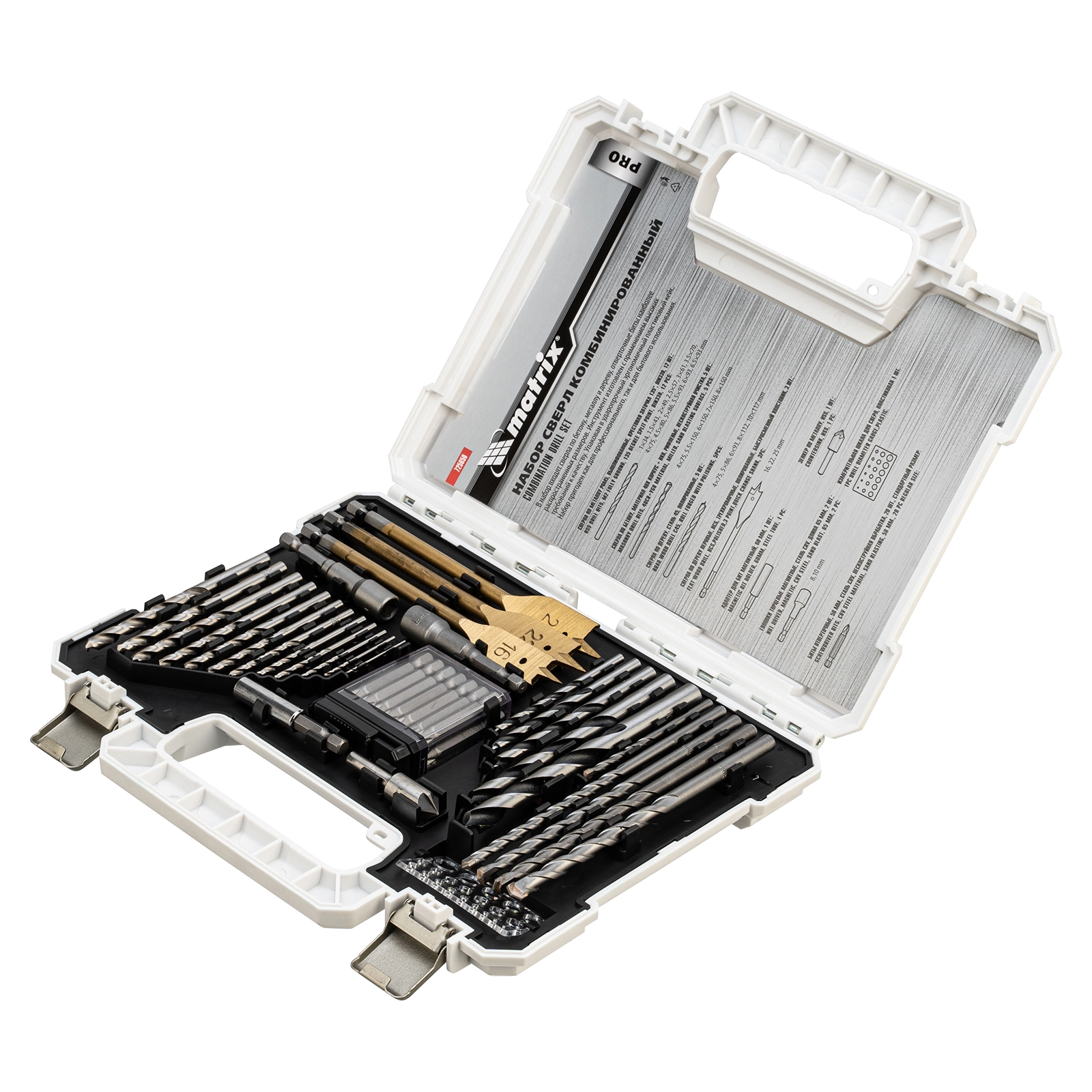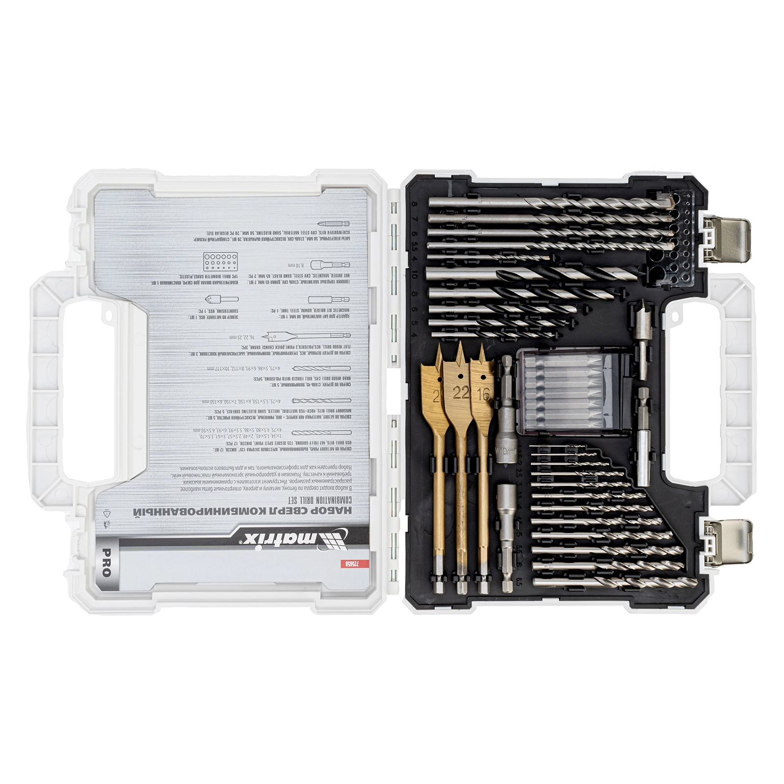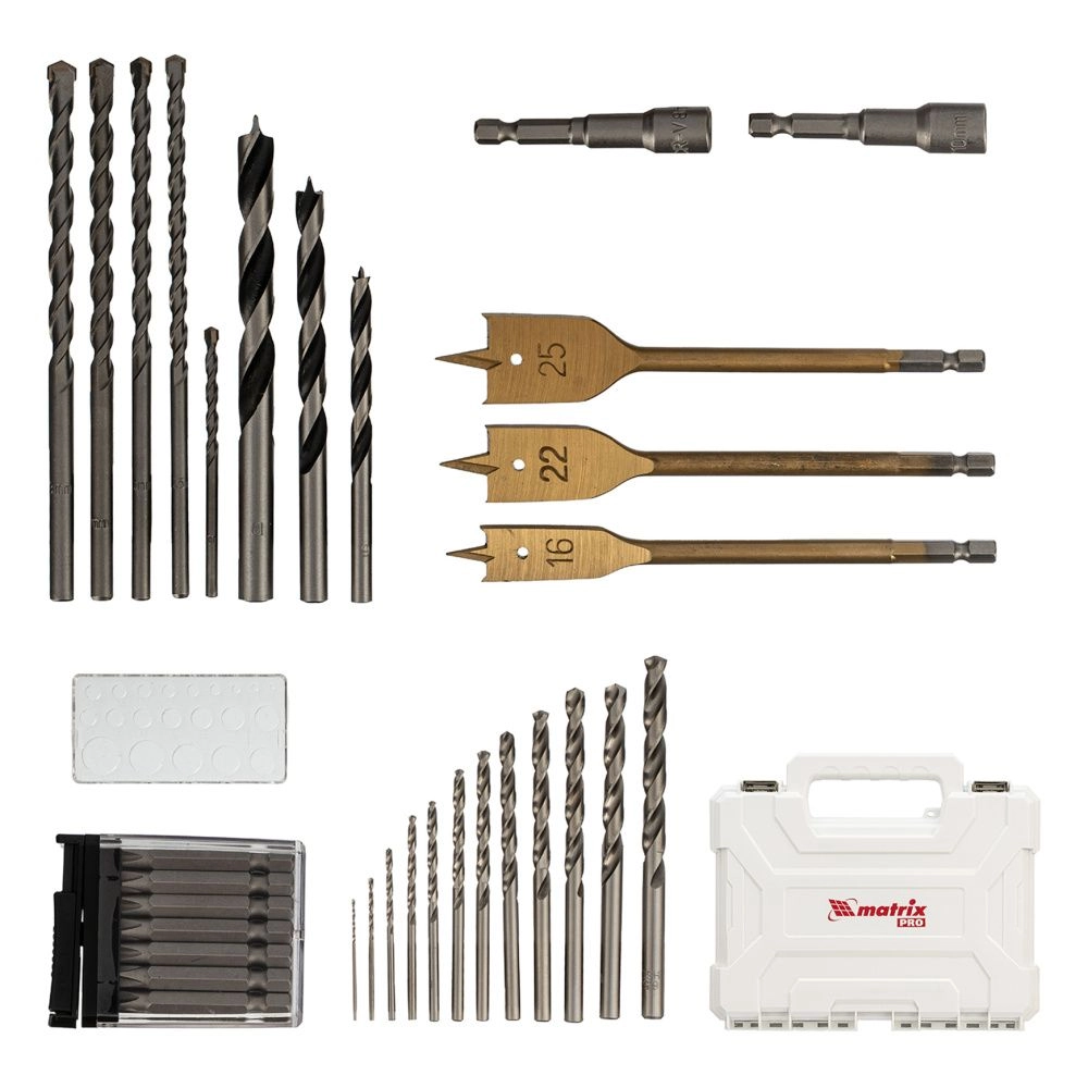 ПроизводителиНабор сверл комб.,мет.1-6,5мм,бет.4-8мм,дер.4-10мм, 50пр. (725650) MATRIX