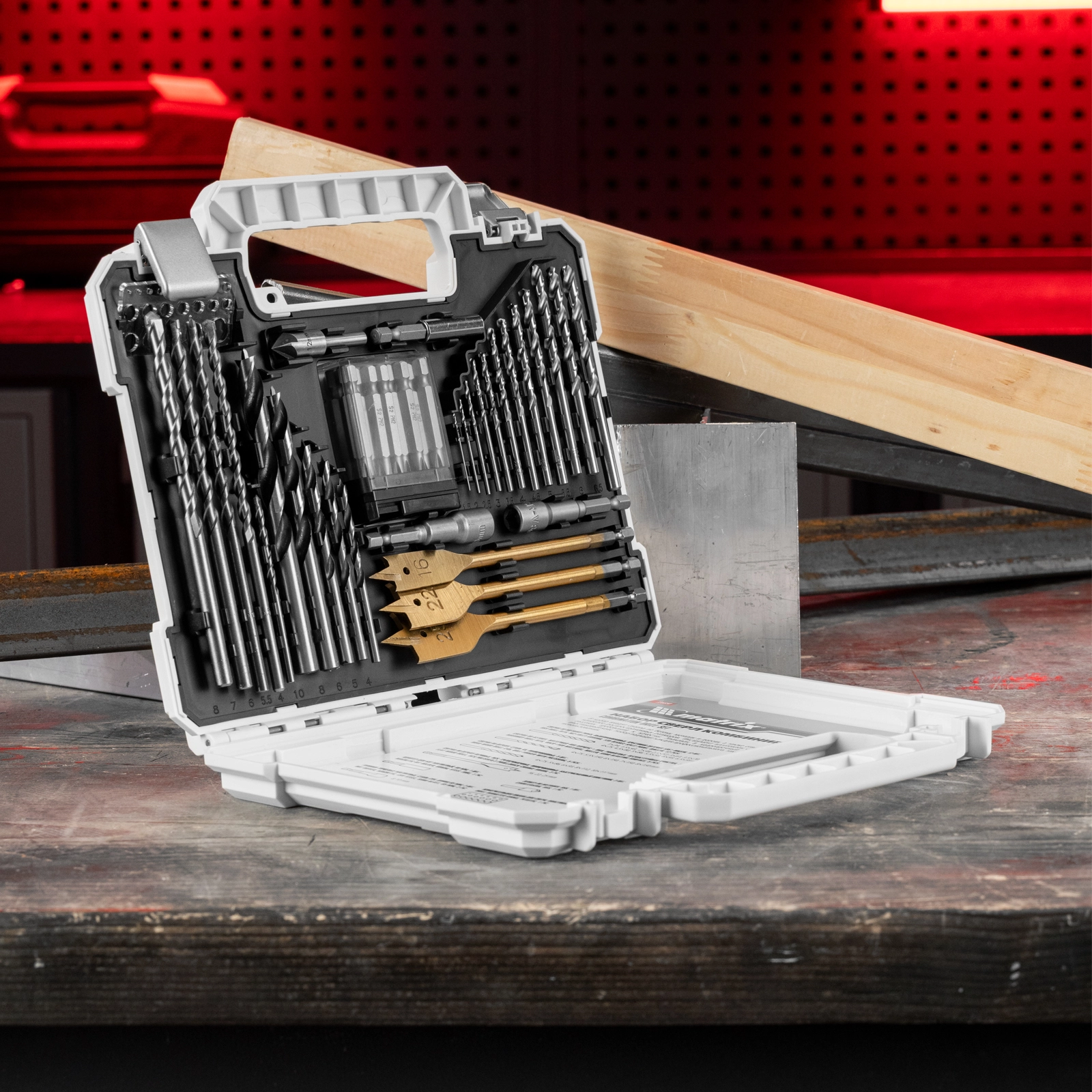 Качественное исполнение деталей набора гарантирует их высокий ресурс: адаптер и торцевые головки выполнен из стали CrV, сверла по металлу из стали Р6М5, а сверла по дереву — из стали 45.