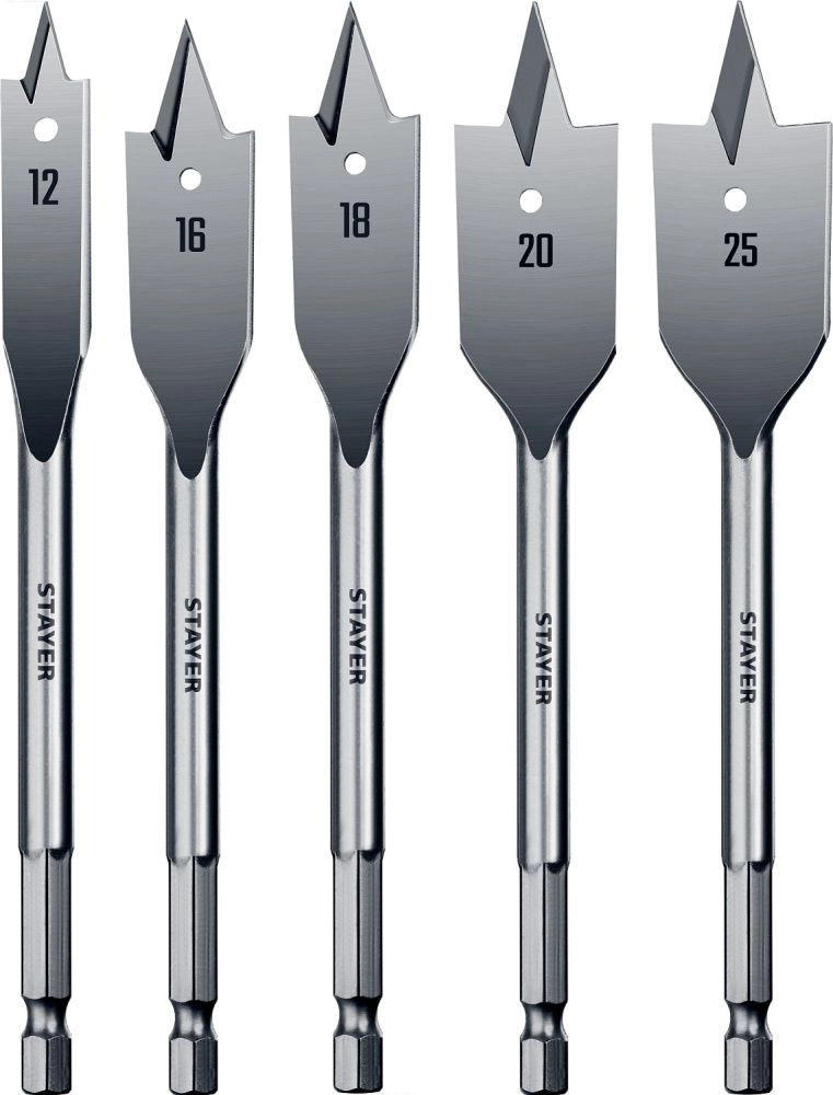 ПроизводителиНабор сверл перовых по дереву, d=12-16-18-20-25мм, 5пр. (2950-H5) STAYER
