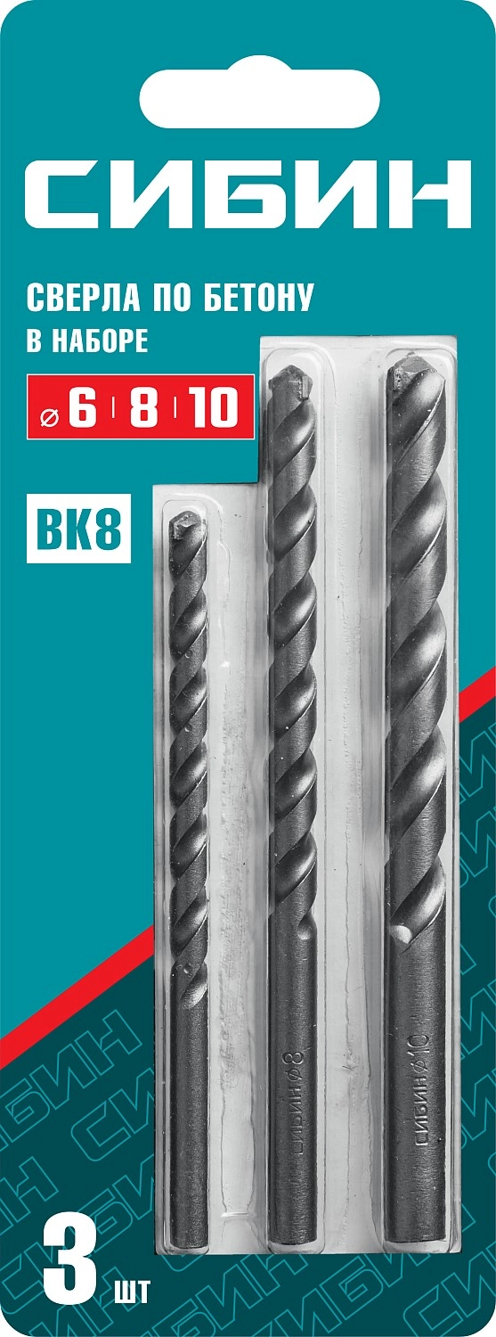 ПроизводителиНабор сверл по бетону, ударные 6, 8, 10мм, 3шт. (29112-H3) СИБИН